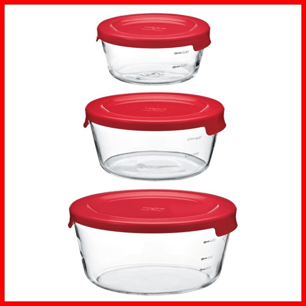 HARIO(ハリオ)耐熱ガラス製保存容器 丸 S/M/L レッド 食洗器OK 日本製 MST-3018-R 3個セット