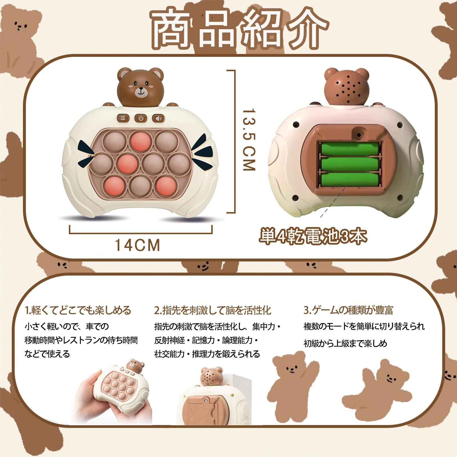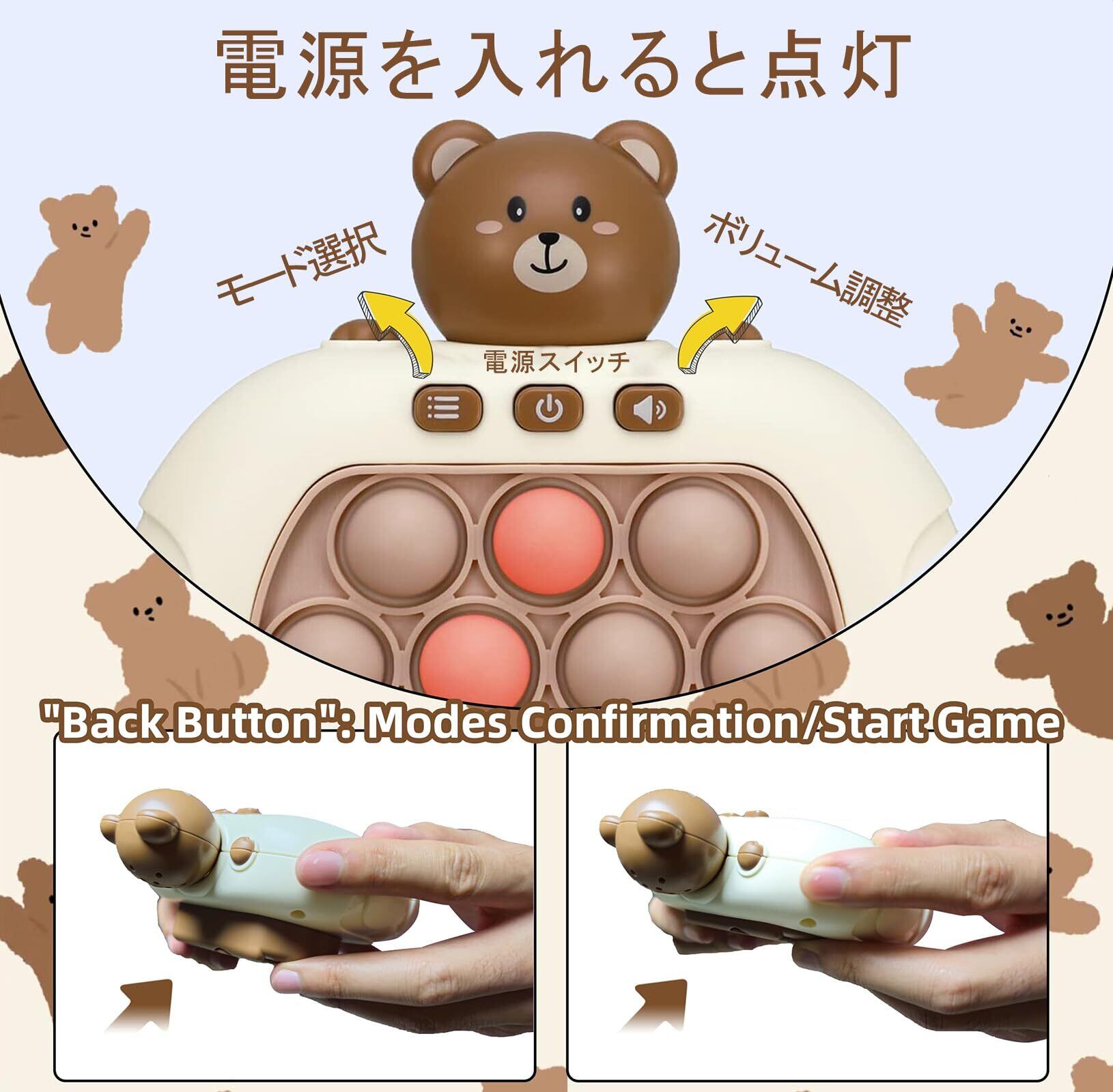 単純なゲームですが、意外と面白い!子供でも大人でも遊べます。バブルは押しやすく、押すとすぐに凹み、バックカバーを押すと凸なります。一歳の子供でも光っているところを押すルールの理解が出来れば一緒に遊べます。親子で遊んだり、仕事や学校でのストレスを解消したり、子供が電子画面を見る時間を減らしたり、認知症を遅らせるために脳の反応を鍛えたり、さまざまな場面で活躍する。