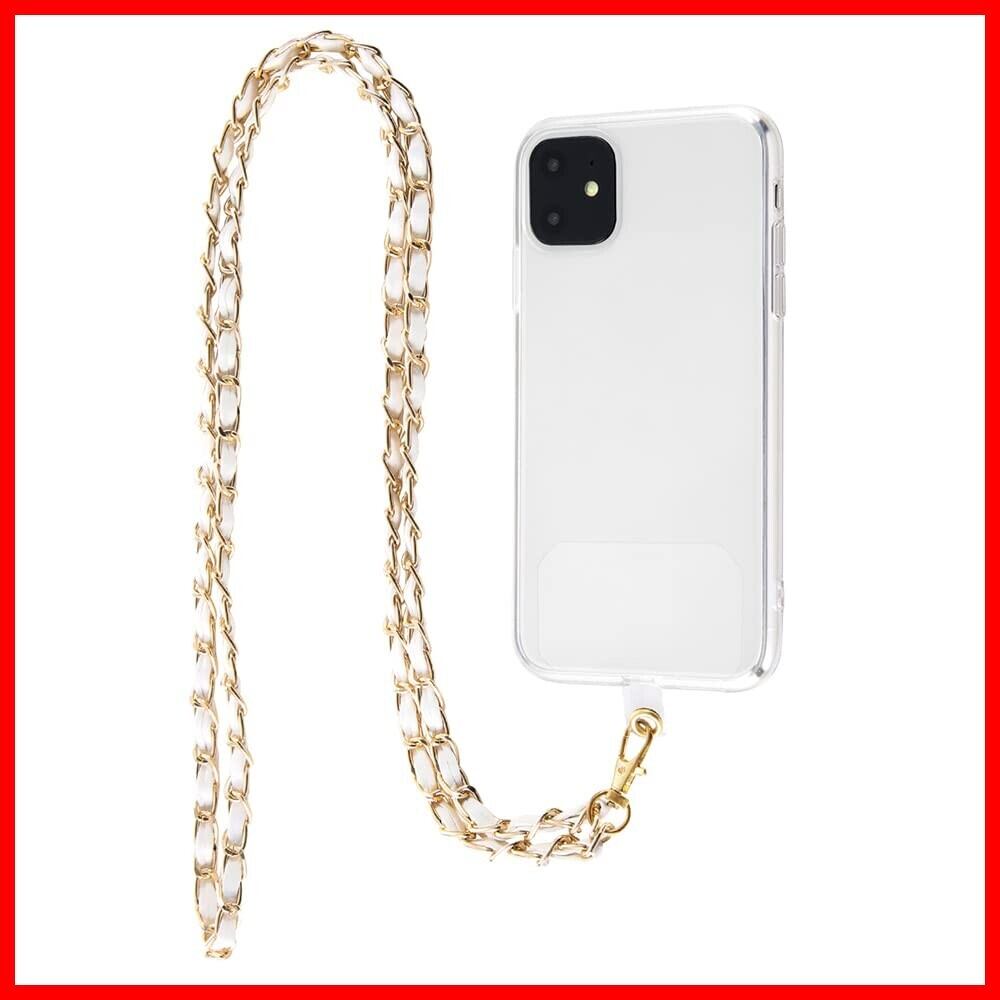 iPhone 11 ハイブリッドケース/クリア+ショルダーストラップ PUレザー チェーン/ホワイト セット
