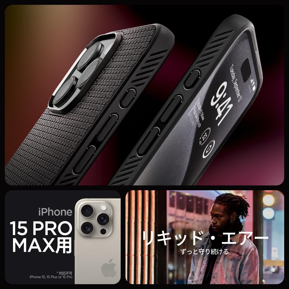 Spigen iPhone 15 Pro Max ケース マット ソフト 米軍MIL規格 耐衝撃 ワイヤレス充電 リキッド・エアー ACS06562 (マット・ブラック)