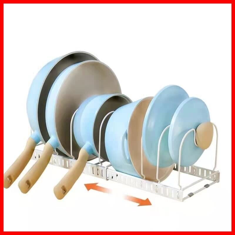 【多機能収納ラック】キッチン鍋収納ラックは30~58.5cm伸縮できます。伸縮できや調整できの仕切りのデザインで、鍋蓋 お皿 まな板等置くことができます上に、様々な鍋も簡単収納しています。