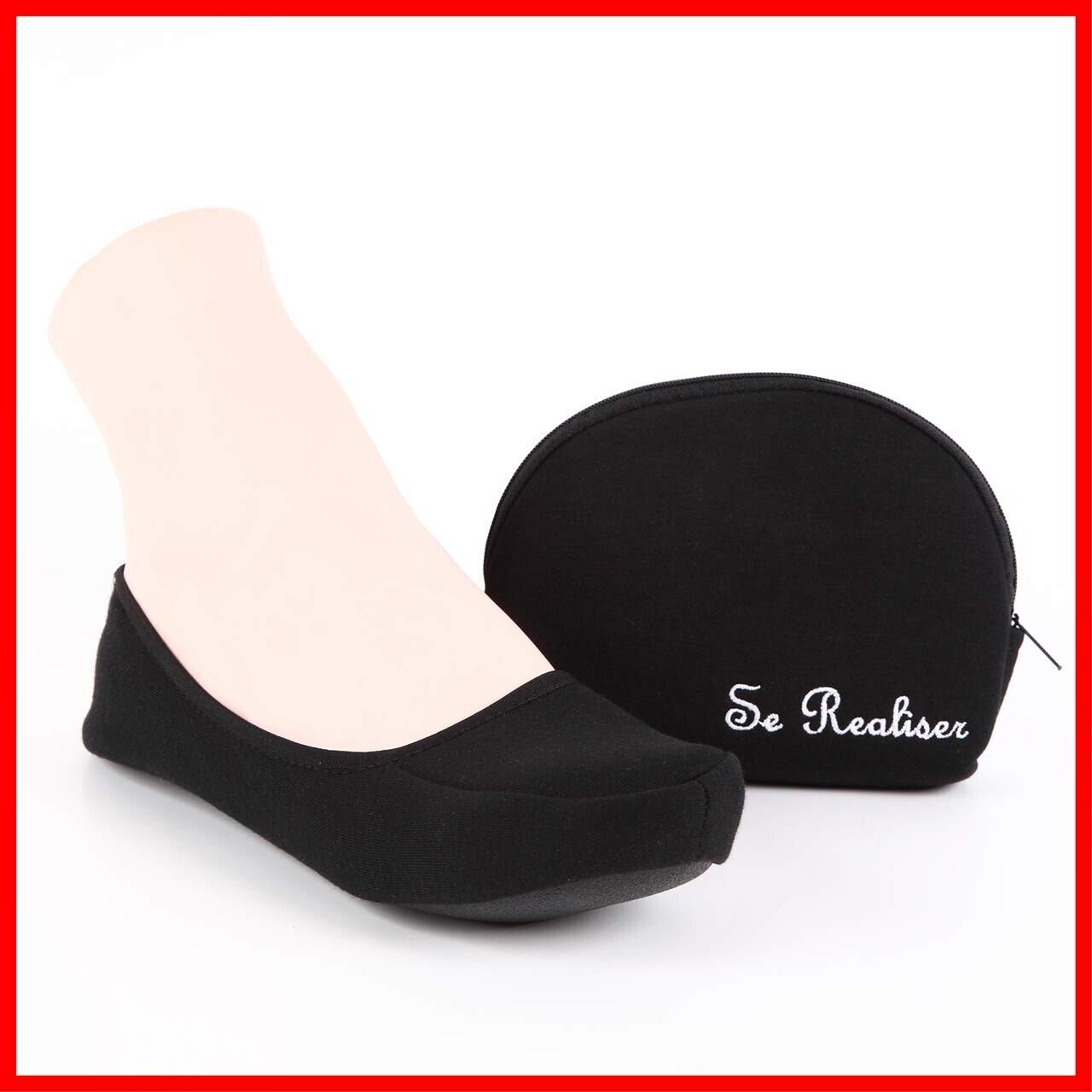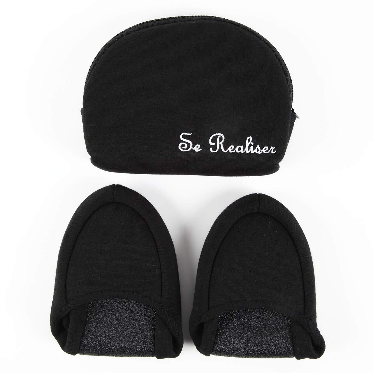 折りたたみスリッパ 携帯スリッパ レディース 内側が足に優しい素材 ふかふか 気持ち良い 足が痛くない 黒無地 お受験シーズン用 学校用 旅行用 機内用 携帯スリッパ 収納ポーチセット 約22cm~約24cm
