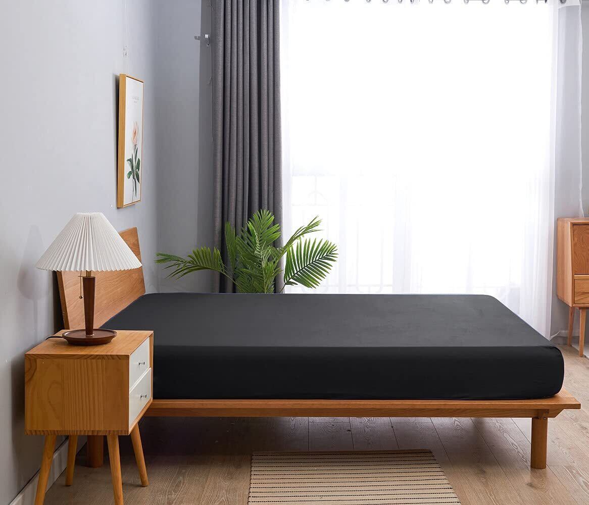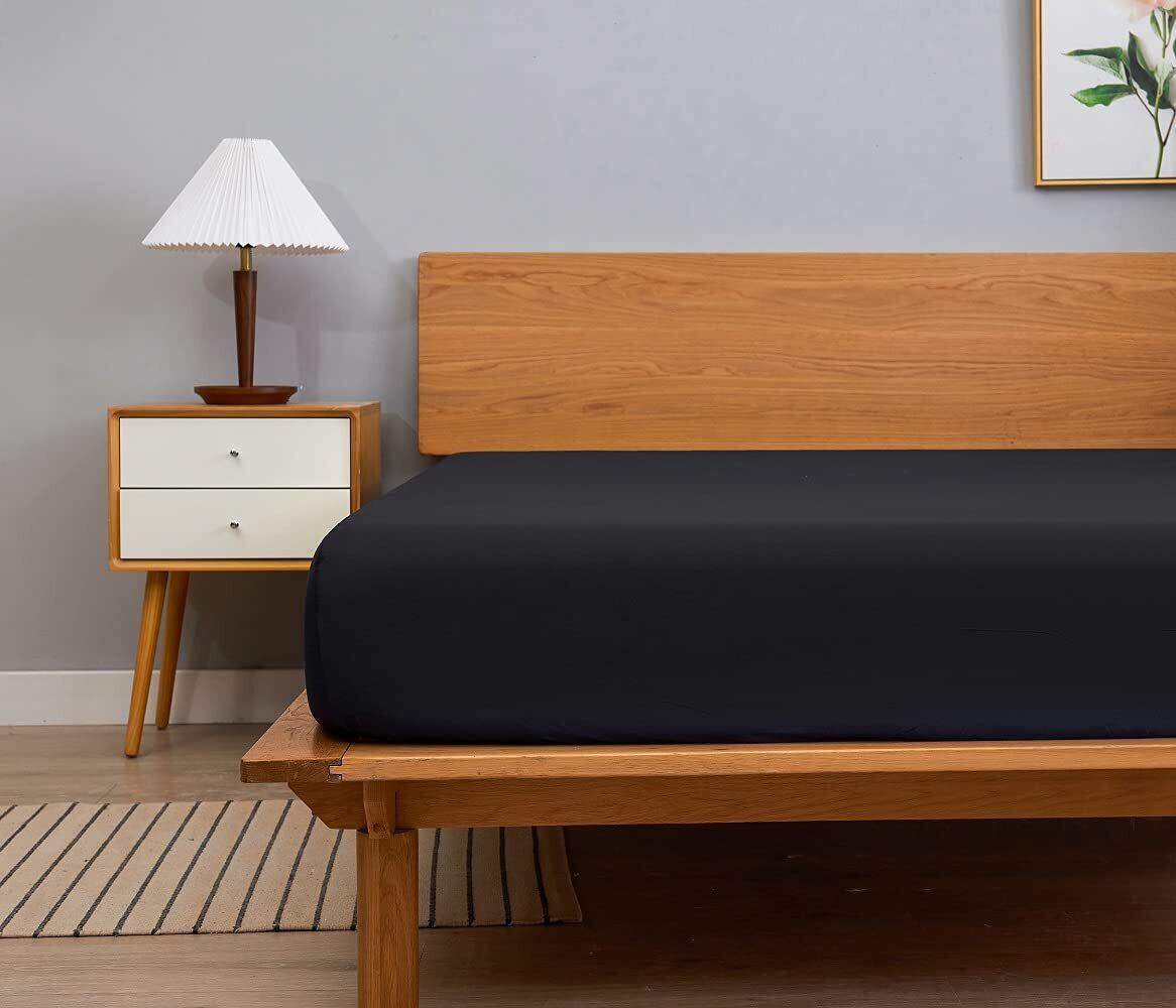 ボックスシーツ セミファミリー 220×200x30cm 綿100% ベッドシーツ 平織り マットレスカバー ベット用 防ダニ 抗菌 BOXシーツ ブラック