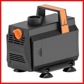 【水陸両用式電動ポンプ】水中と陸上の両方で使用可能な噴水ポンプです。カバーを開け、入水口にノズルを設置してチューブを接続することで、陸上でも使用可能です。水を離れた状態でも正常に作動しますが、作動する前にポンプ内に水を入れる必要があります。