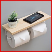 山善(YAMAZEN) トイレットペーパーホルダー 棚付き (スマホ置き/インテリア) ダブル 汚れに強い天板 かんたん設置 幅32×奥行11×高さ9cm ウッドナチュラル/マットホワイト RPH-W(WN/MWH) | hananoki