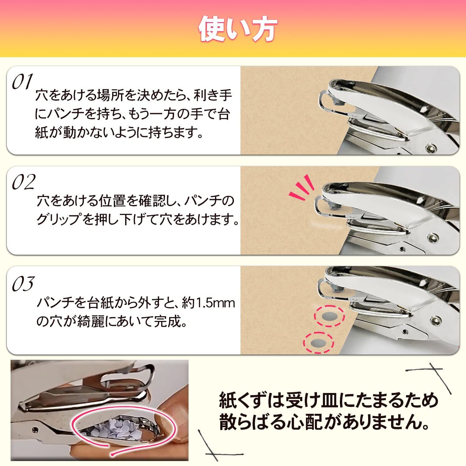 穴あけパンチ クラフトパンチ 1.5mm 小さい 丸 ピアス用 ピアス台紙用 1穴 ハンドメイド フェルト ペーパーパンチ シングル 事務用品 ルーズリーフ