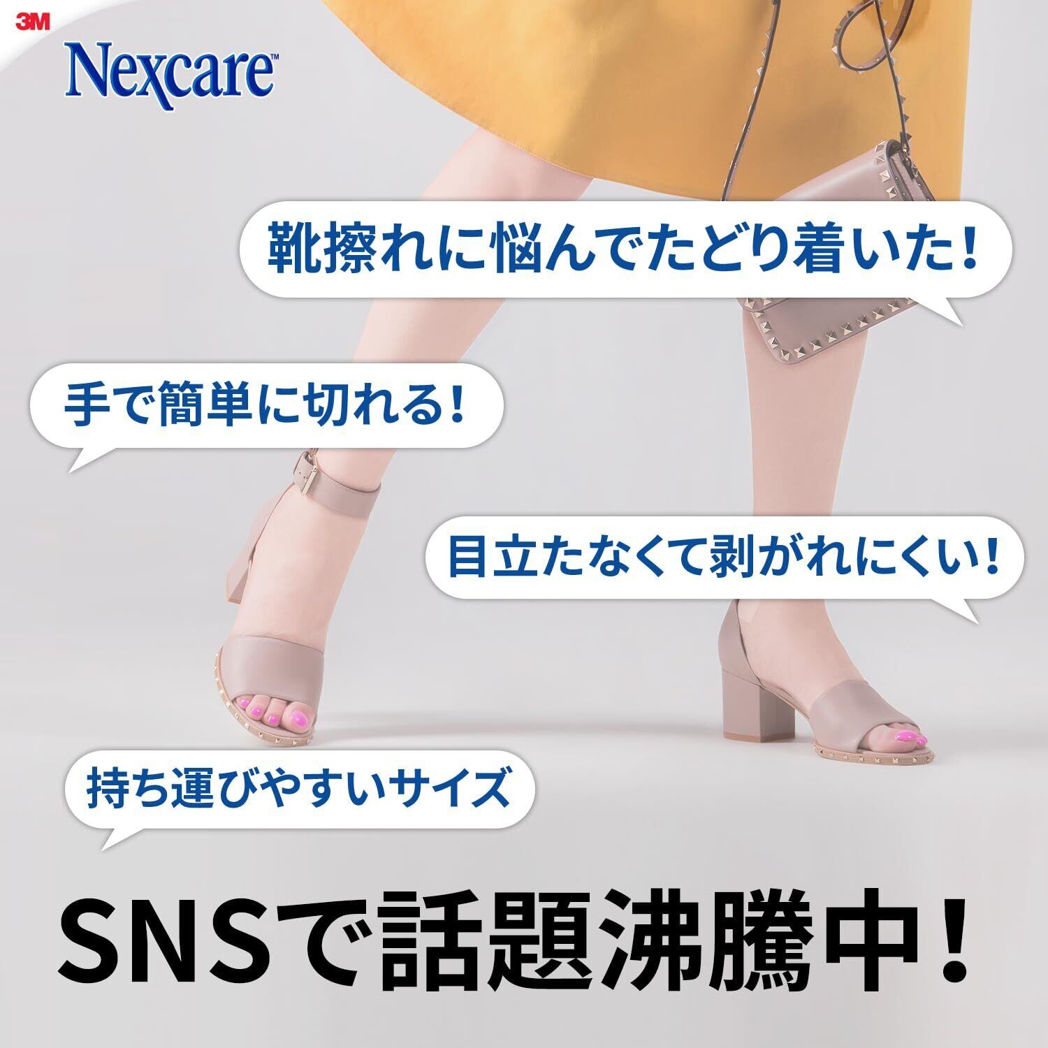 靴ずれしそうな場所に手軽に使える靴ずれ保護テープ。 手で簡単に切れてどこでも貼りやすく、靴ずれを予防できます。 粘着力があるのでしっかりついてはがれにくく、半透明で目立ちません。