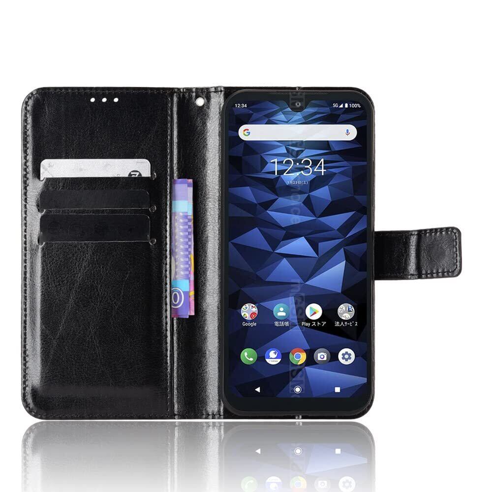 For 京セラ KYOCERA DIGNO BX2 A101KC ケース 手帳型 A101KC 手帳型 手作り 高級PU レザーケース For DIGNO BX2 ケース 手帳型 ストラップ付き 落下防止 衝撃吸収 財布型 カバー スタイリッシュ 横置き 耐衝撃 傷つけ防止 保護カバー 人気 For DIGNO BX2 A101KC 手帳型(ブラック)