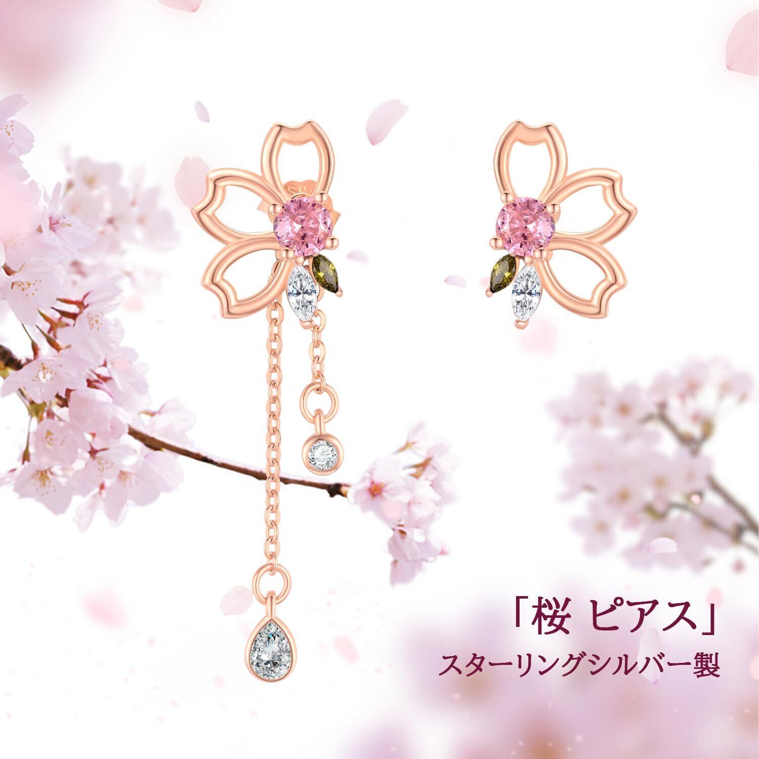 StoryMidir 花 ピアス 桜 和柄 スタッドピアス 揺れるチェーン付き ピンクゴールド シルバー925 金属アレルギー対応 さくらピアス レディース 2way ピアス ジルコニア 可愛いピアス 和風 ホワイトデー 母の日 クリスマス プレゼント アクセサリー 女性ヘちーの贈り物 ギフト 誕生日 お祝い 記念日 | hananoki