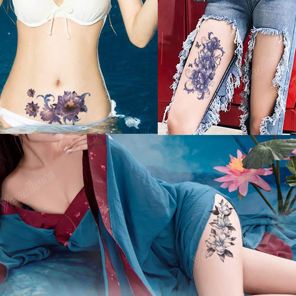 Yesallwas タトゥーシール 薔薇 青 ブルー 花 8枚セット 紫 バラ ロース おしゃれ 防水 長持ち 入れ墨シール 腕 足 胸 女性 レディース タトゥーステッカー ボディーシール 刺青シール blue Rose tattoos sticker 9x19cm (青) | hananoki