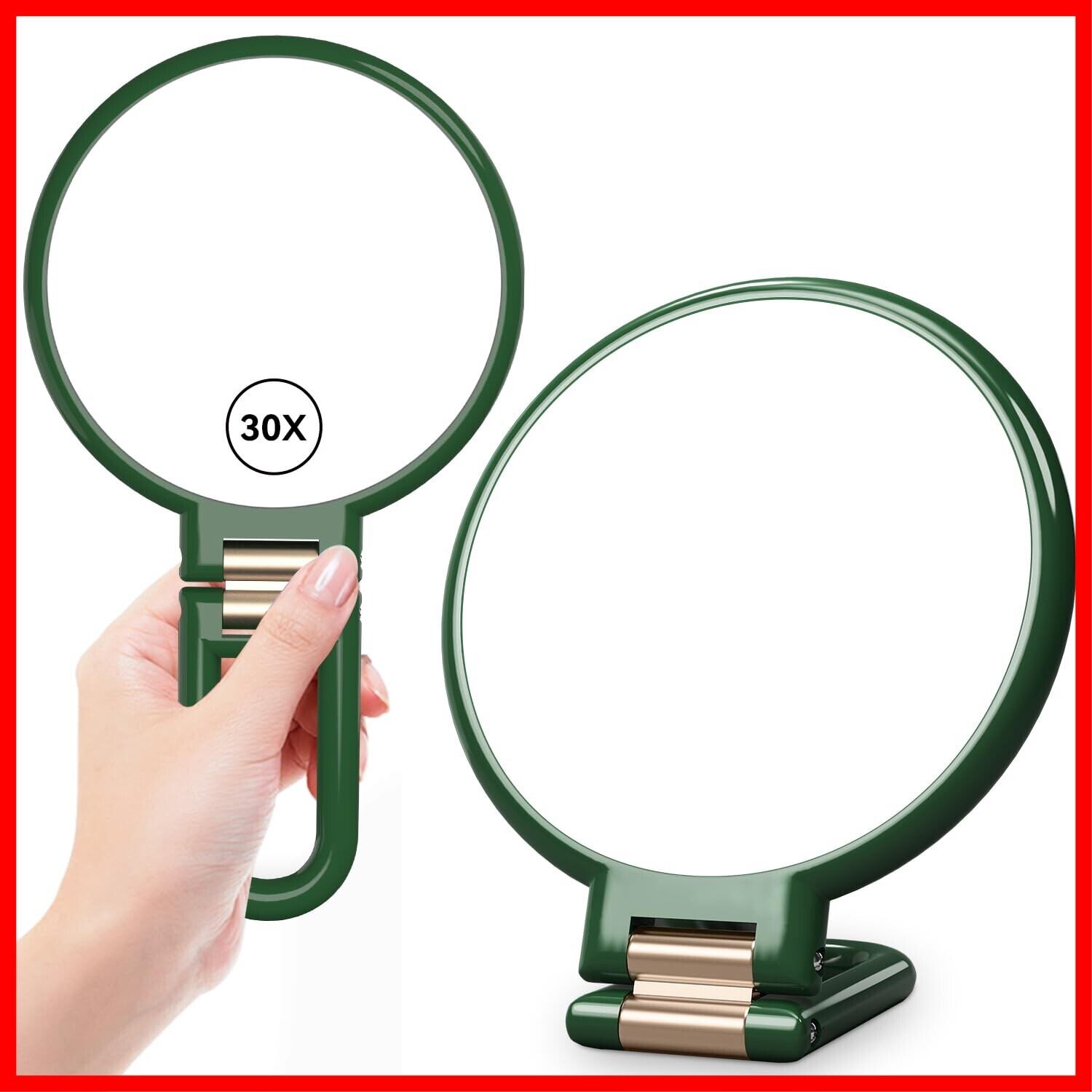 Auxmir 手鏡 化粧鏡 拡大鏡 30倍と等倍 折りたたみ式 ハンド&スタンドミラー 吊り下げ式 卓上/吊り下げ/手持ち可能 持ち運び便利 鏡 卓上 コンパクト 軽量 旅行用 ハンドル付き両面鏡 円形 緑色 プレゼント | hananoki