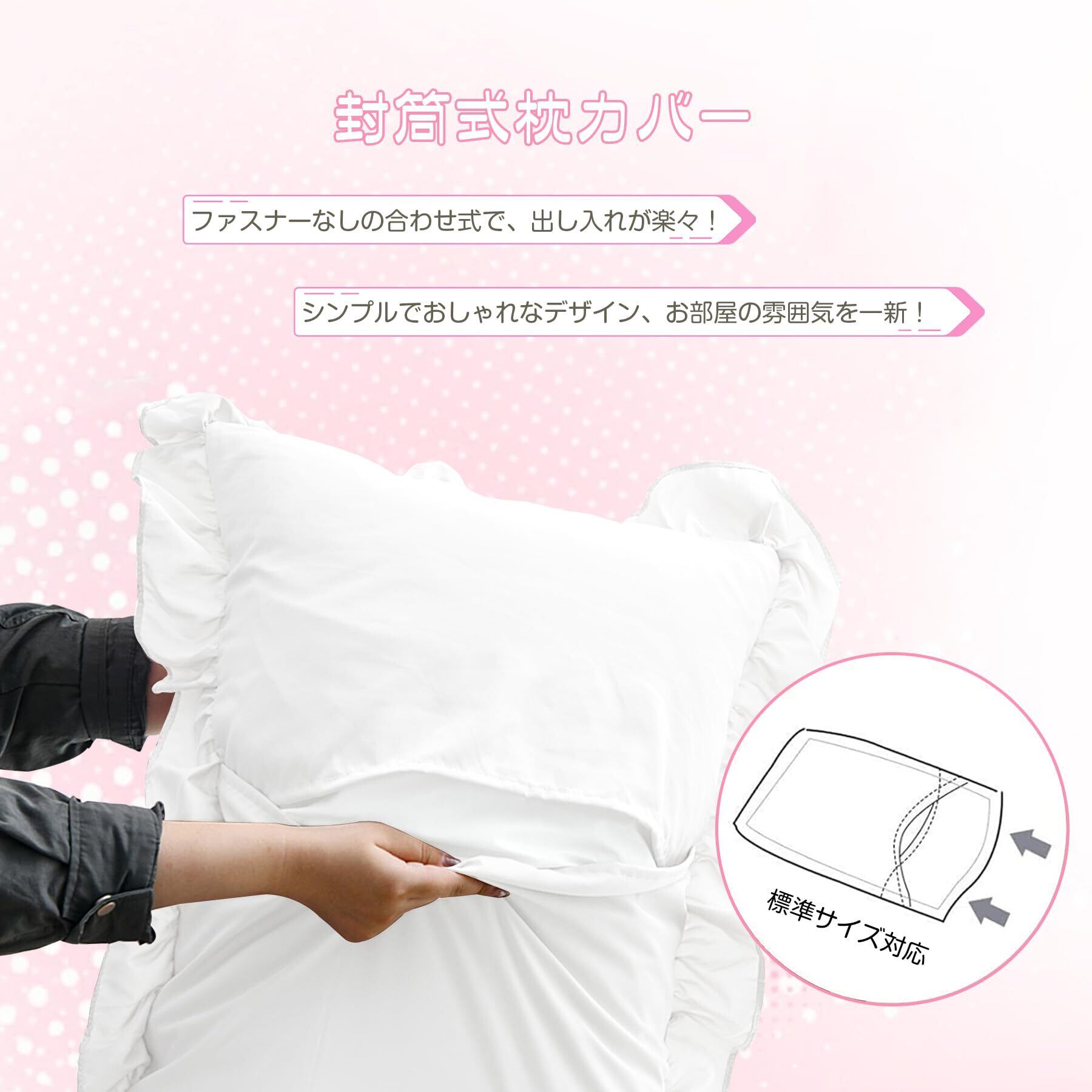 【シアサッカー生地 大人かわいい上品な フリル】 ポリエステル100%、綿素材と比べてシワになりにくく、シアサッカー生地で、肌触りが良く、快適で心地よくご利用いただけます。波のような縞ができていて柔らかな肌触りで1年中でご愛用いただけます。おしゃれで甘すぎない程よいフリル感に仕上げました。いつもの寝具にセットするだけで、お部屋を華やかに演出します。