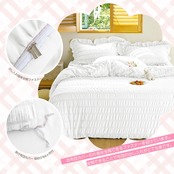 布団カバー AYO セミダブル・4点セット シアサッカー生地 フリル付き 掛け布団カバー ベッドカバー 枕カバー ボックスシーツ 寝具カバーセット ピーチスキン加工 洋式和式兼用 洗い替え 速乾タイプ(ホワイトセミダブル・4点セット)