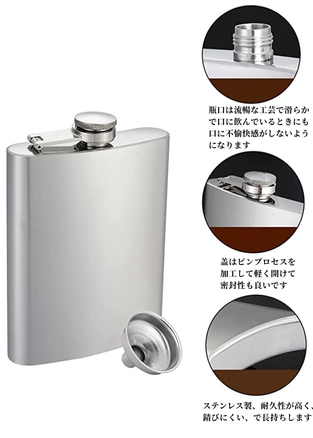 スキットル ヒップフラスコ ステンレス製 漏斗付き大容量 ウイスキー 清酒 軽量 持ち運び便利 (10オンス-シルバー)
