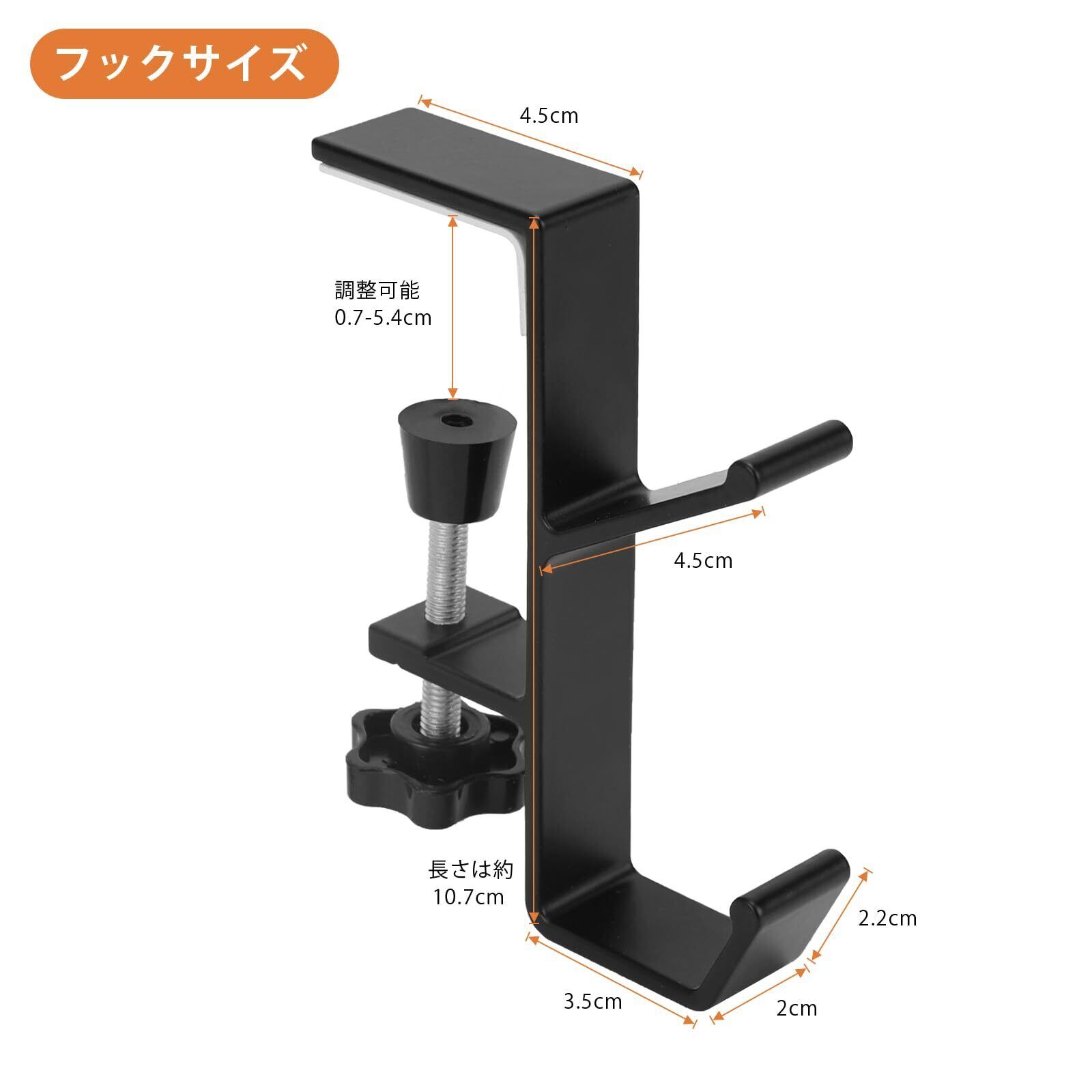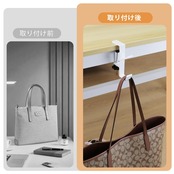 【便利な2フックデザイン】1つのフックに2つの掛け部を備え、バッグやヘッドホンなどを同時に掛けることが可能。効率的かつ便利なデザインです。