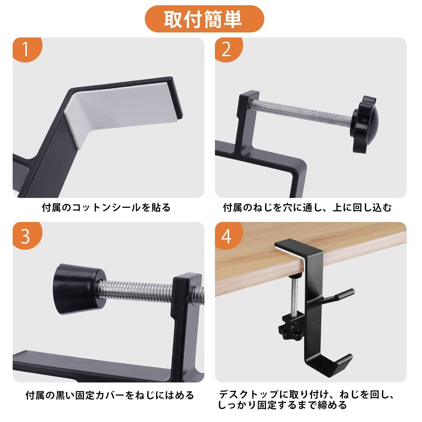 Mairearn テーブルフック バッグハンガー 戸棚下ハンガー 机に掛けるフック ヘッドホンフック カバン掛け アルミ合金 耐荷重20KG 固定式 調節可能 自由に配置可能タイプ (ブラック 2個セット) | hananoki