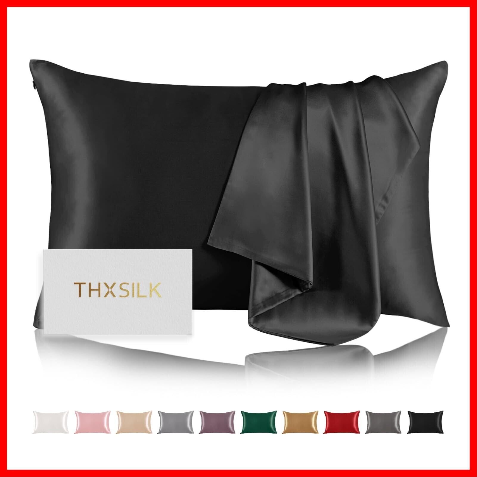 THXSILK 枕カバー シルク 最高グレード6A OEKO認証済み 隠しジッパー 100%シルク 両面 洗える 睡眠サポート 寝癖軽減 美髪・美肌 敏感肌 静電気防止 防ダニ・抗菌 ギフト 贈り物 四季適応 一枚 (50*70cm・ ブラック) | hananoki