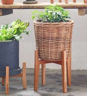 マホガニーを使った木の温もりを感じるポットスタンド。直径20cmの鉢サイズまで対応のナチュラルなポットスタンドです。