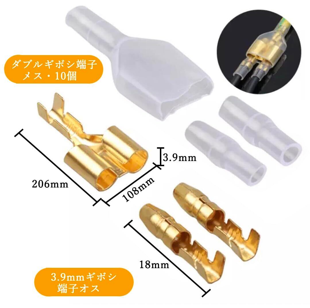 ギボシ端子セット 二股 ギボシ端子 ダブル 平型端子 250型 丸型 クワ型 圧着端子 Φ6mm Φ8mm 真鍮 CA・CW104 絶縁スリーブ付き 配線接続 バイク 車 280個 | hananoki