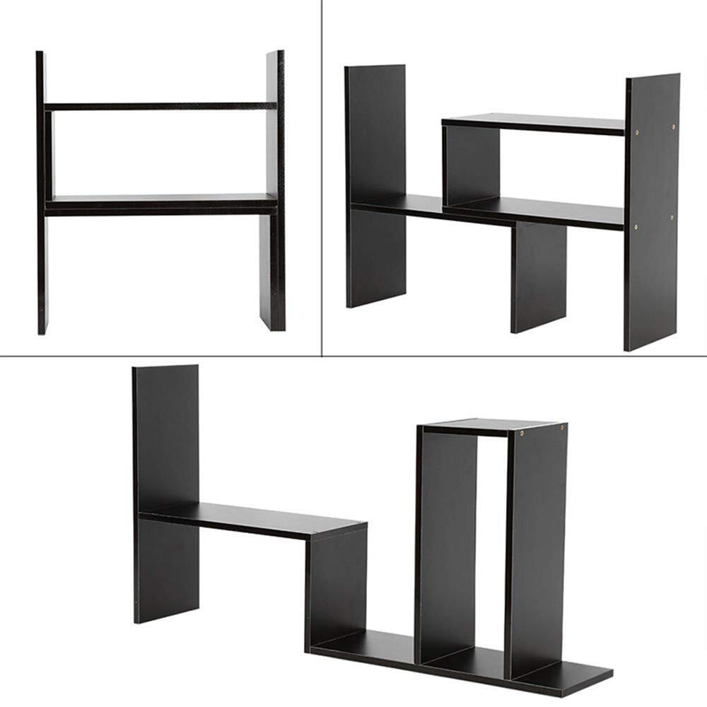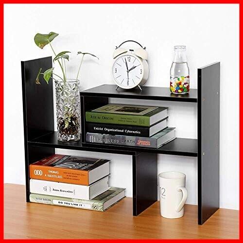JFSTA デスク上置き棚 伸縮型本立て 卓上収納 木製 多種組み立て方式 クリエイティブデスクシェルフ (ブラック)