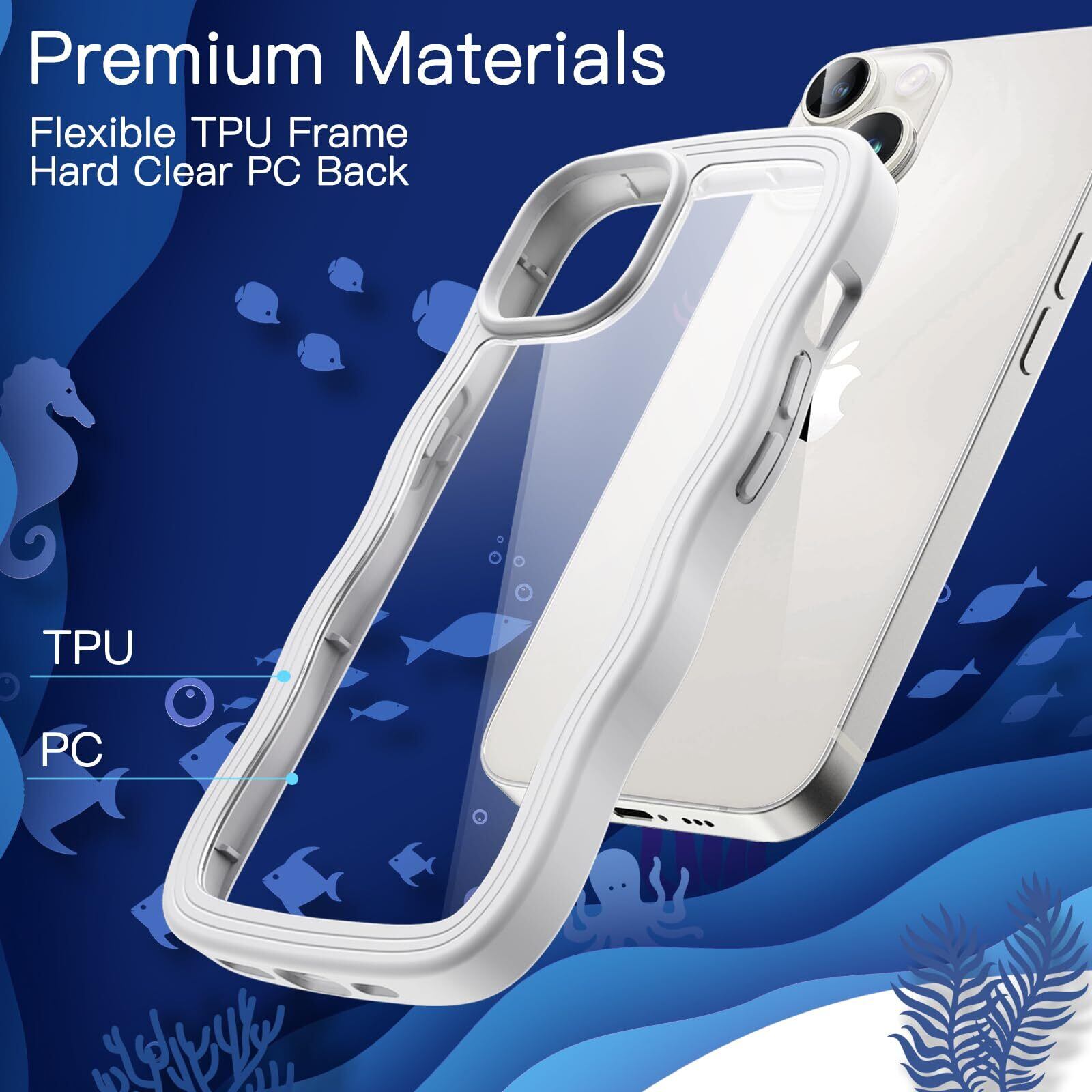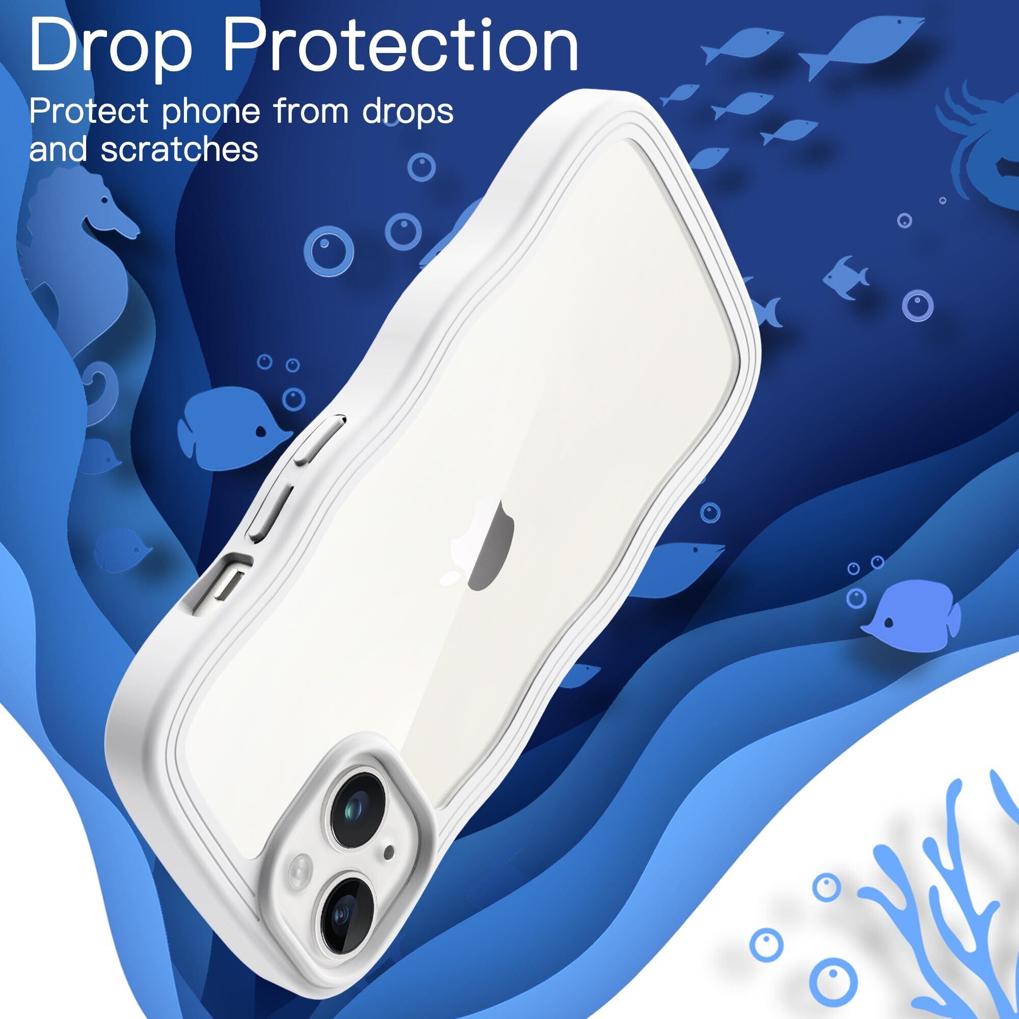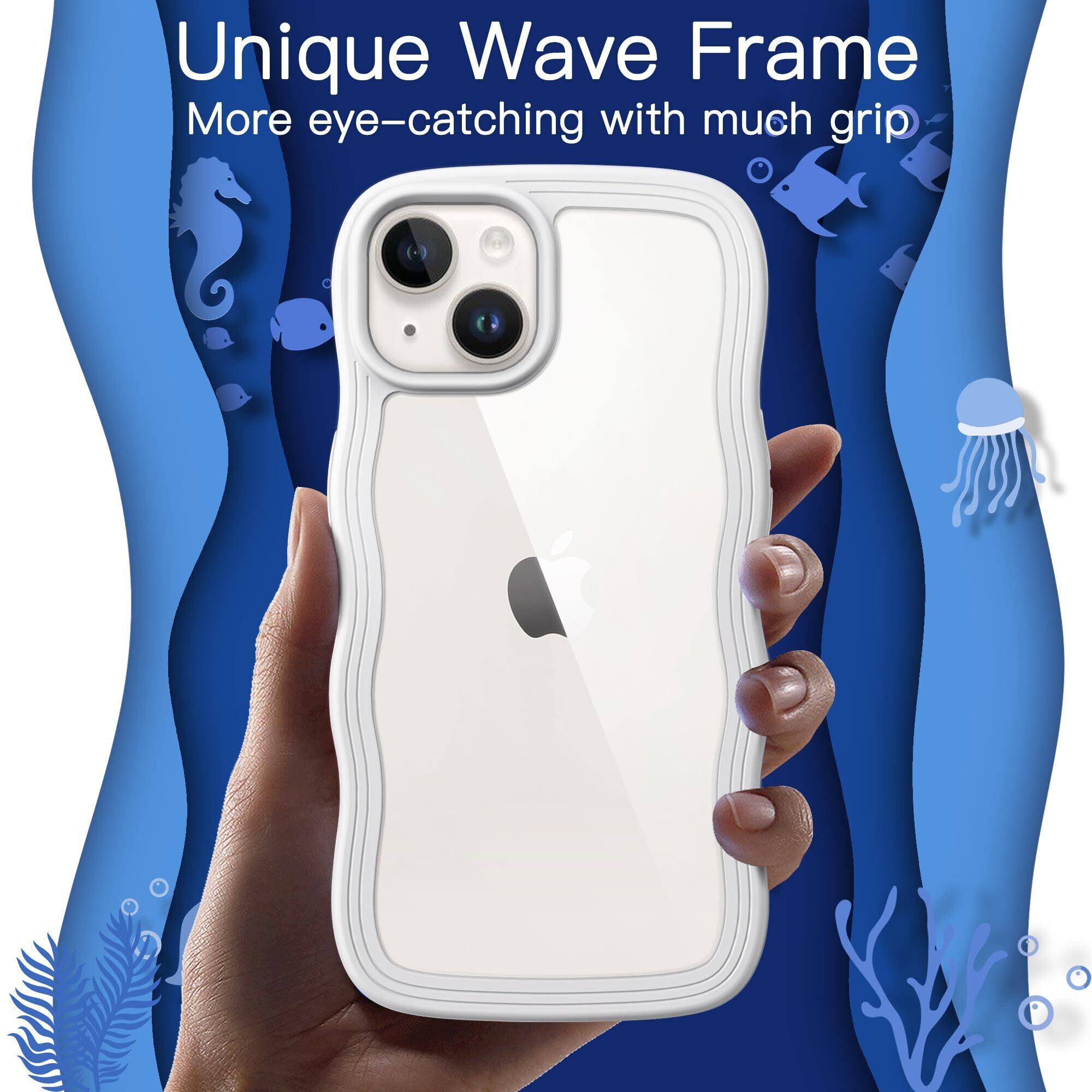 JEDirect iPhone 14 6.1インチ用 かわいい ケース 波状フレーム うねうね 耐衝撃 スマホカバー 女性用 女子向け クリア ハードPCバック (ホワイト)