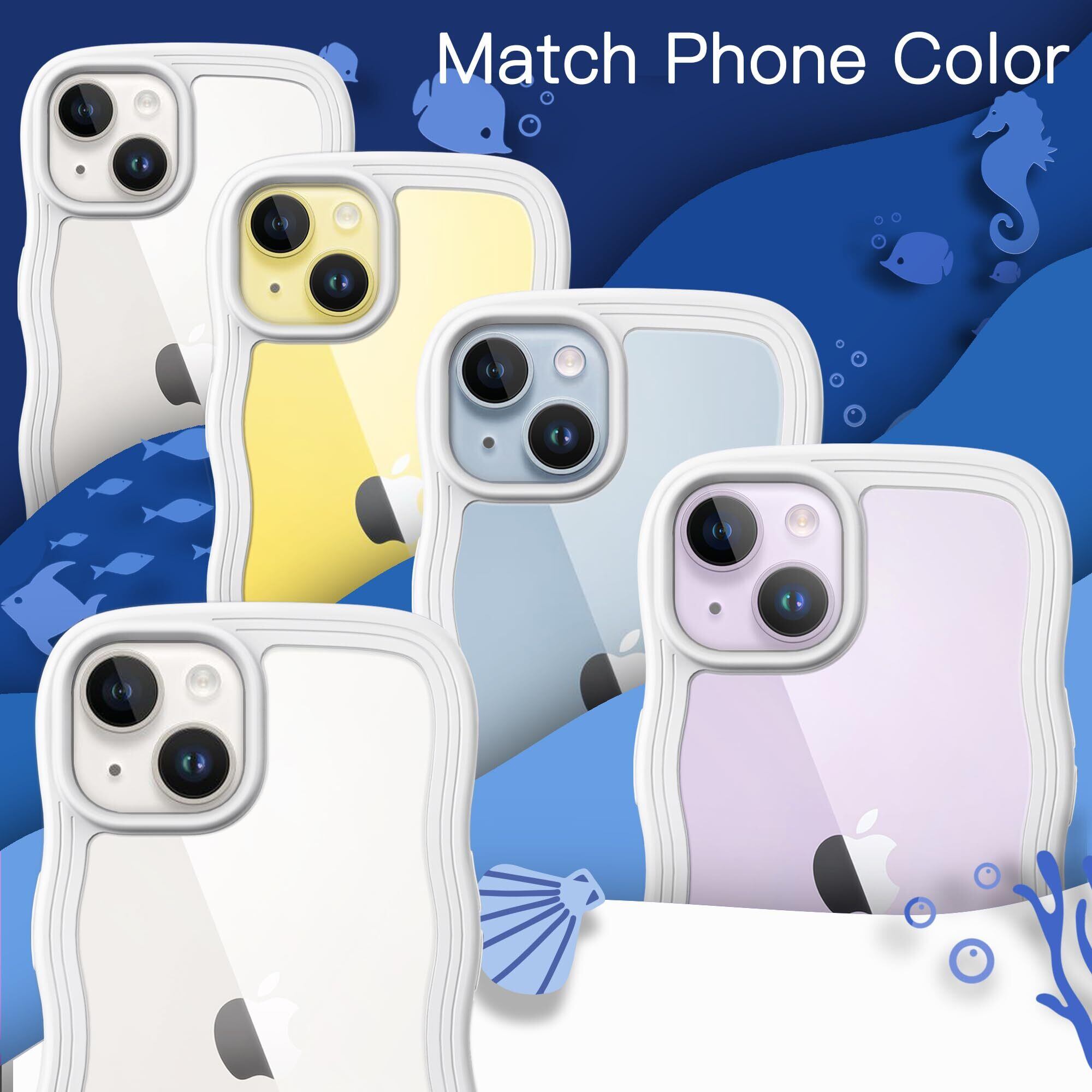 JEDirect iPhone 14 6.1インチ用 かわいい ケース 波状フレーム うねうね 耐衝撃 スマホカバー 女性用 女子向け クリア ハードPCバック