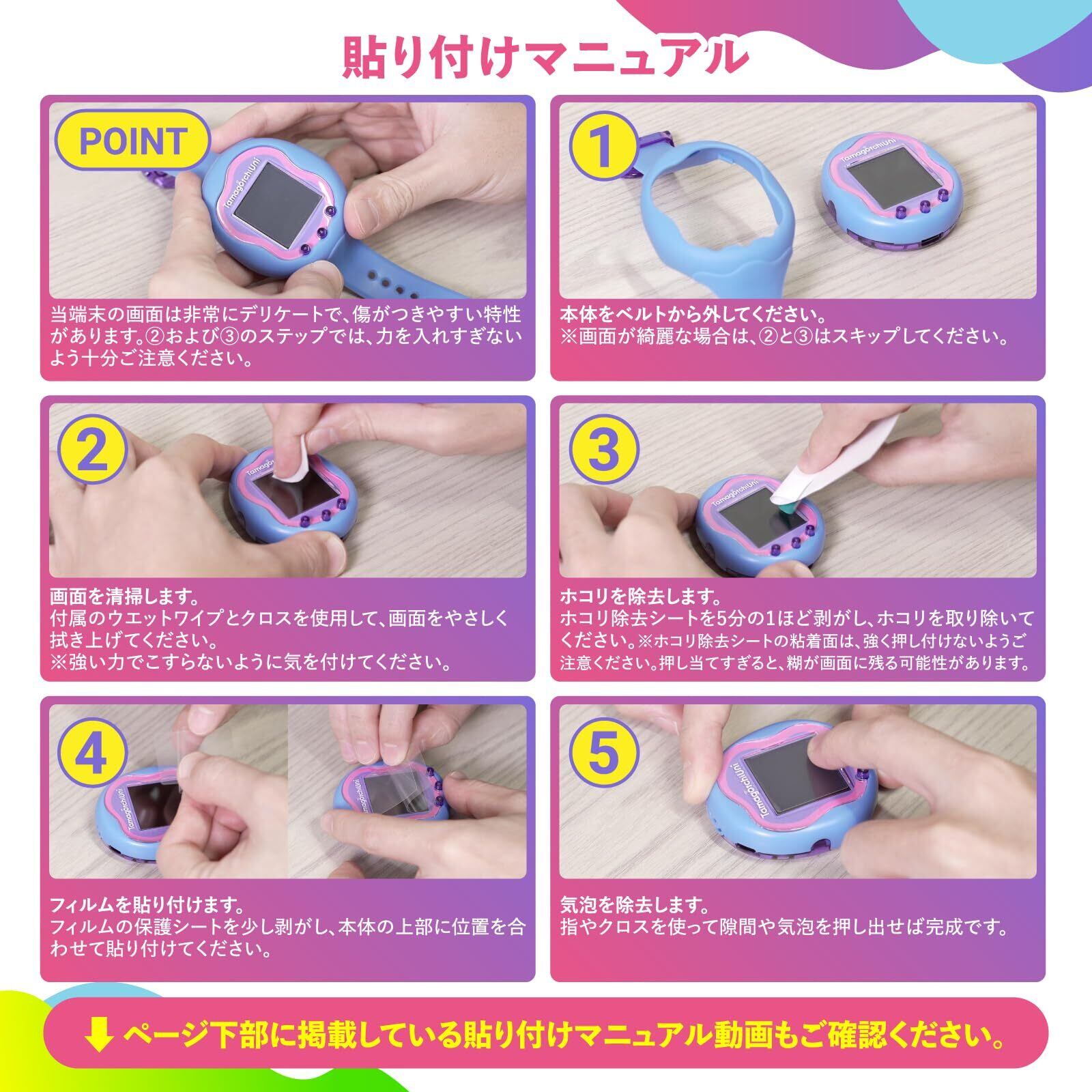 【対象機種】 Tamagotchi Uni ( たまごっちユニ ) 用 【充実のセット内容】:『保護シート2枚』・『拭き取りシート』・『クリーニングクロス』・『ホコリ除去シール』でフィルム貼りをサポートいたします。