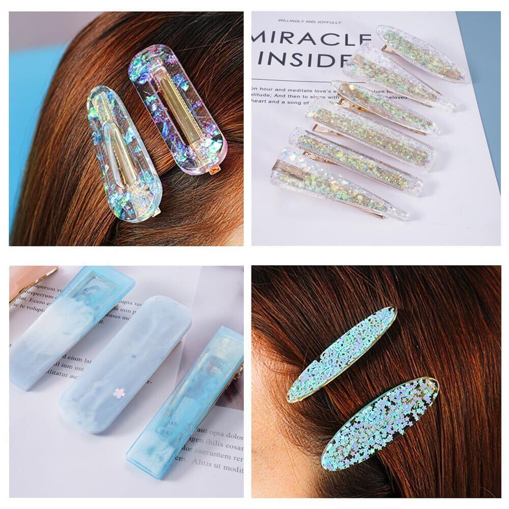 適用場面:UV樹脂、エポキシ樹脂、樹脂粘土などに使用してヘアピンを作るのに最適で、付属の金属クリップを組み合わせると、簡単にきれいなヘアピンを作ることができます。そのほか、16種類の異なる形状があるので、ペンダントやネックレス、キーホルダーなどのアクセサリーも作ることができ、作った既製品は自分で使うだけでなく、家族や友人へのプレゼントにもなります。