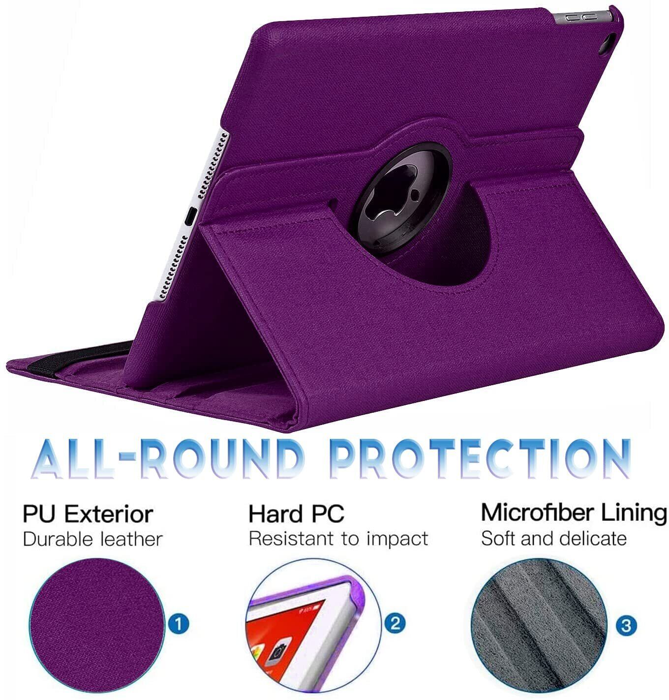 JXCX iPad 9.7 2018/2017ケース 新型(Newモデル)/iPad Air/iPad Air2カバー iPad 9.7インチ(第6、5世代)軽量 手帳型 360度回転スタンド オートスリープ機能 3段階調節可能 固定バンド 脱落防止耐衝撃 耐久性 おしゃれデニム生地 (スミレ色)