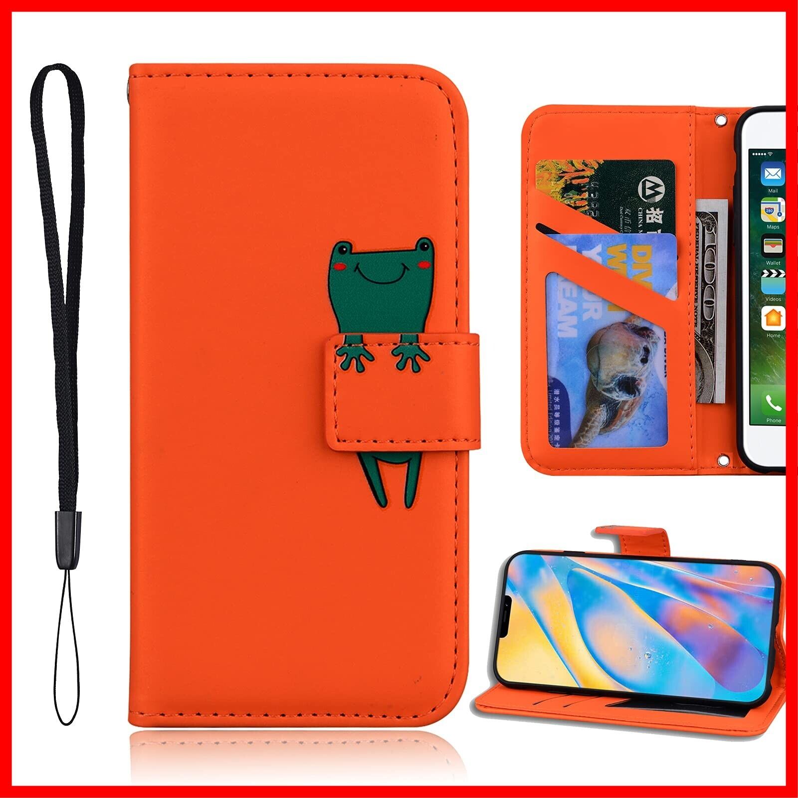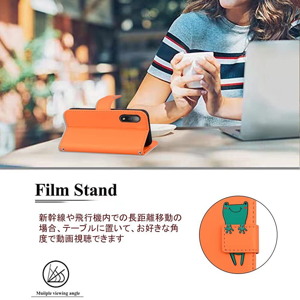 Xperia Ace II SO-41B ケース 手帳型 xperia ace ii so41b 手帳型ケース ソニー エクスペリア エース2 手帳ケース so41b ケース 手帳型 カバー Sony Xperia Ace II スマホケース 可愛い キャラクター 携帯ケース スマホケース 携帯カバー レザー 柔らかいTPUケース 肌触り良い革 スマホけーす ケータイケース カード収納 財布付き カードホルダー ベルトマグネット スタンド機能 カエル かわいい 動物柄 薄型 防水 ノート型 人気 おしゃれ 男女兼用 Sony Xperia Ace II SO-41B 対応 オレンジ