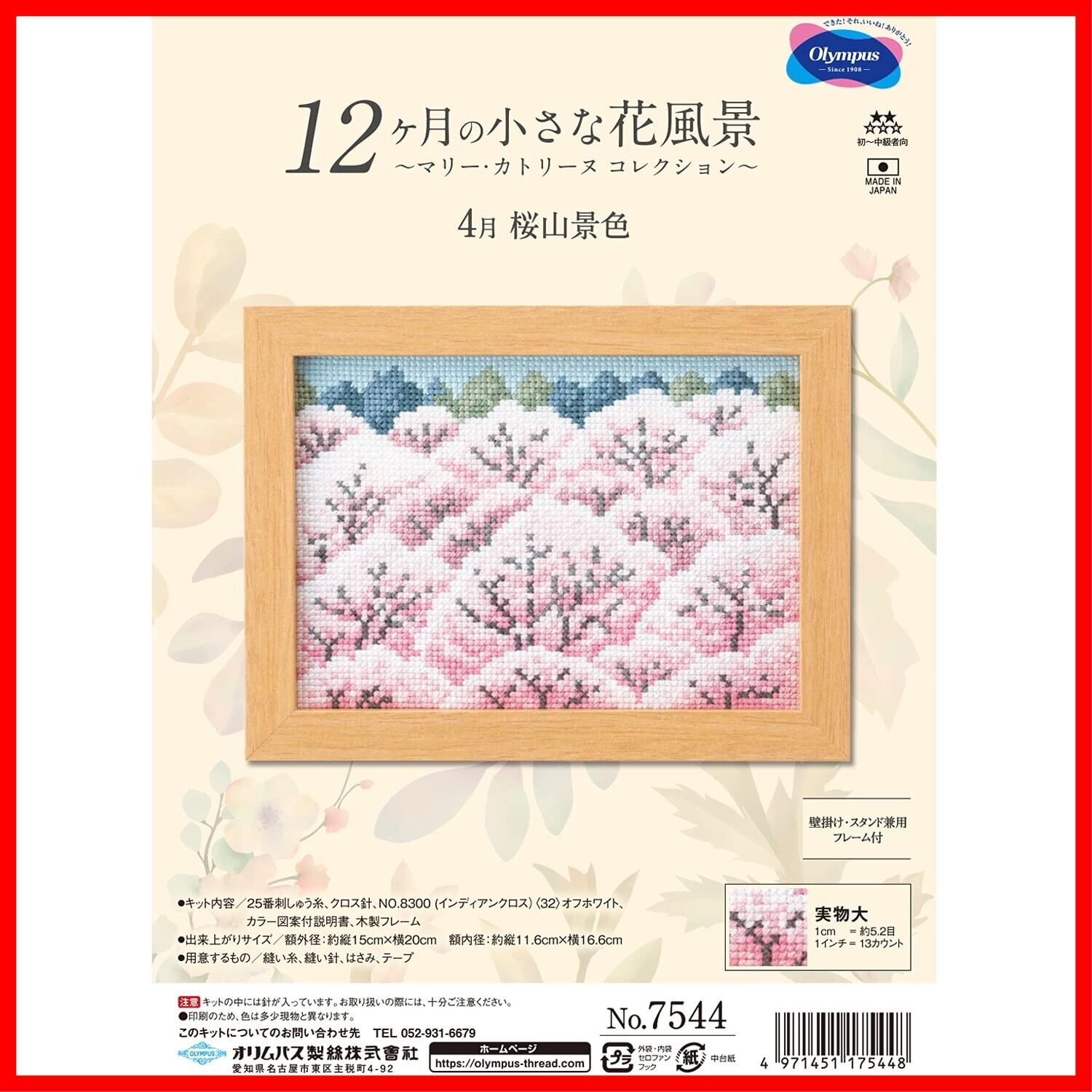 オリムパス製絲 刺しゅうキット 4月 桜山景色 No.7544