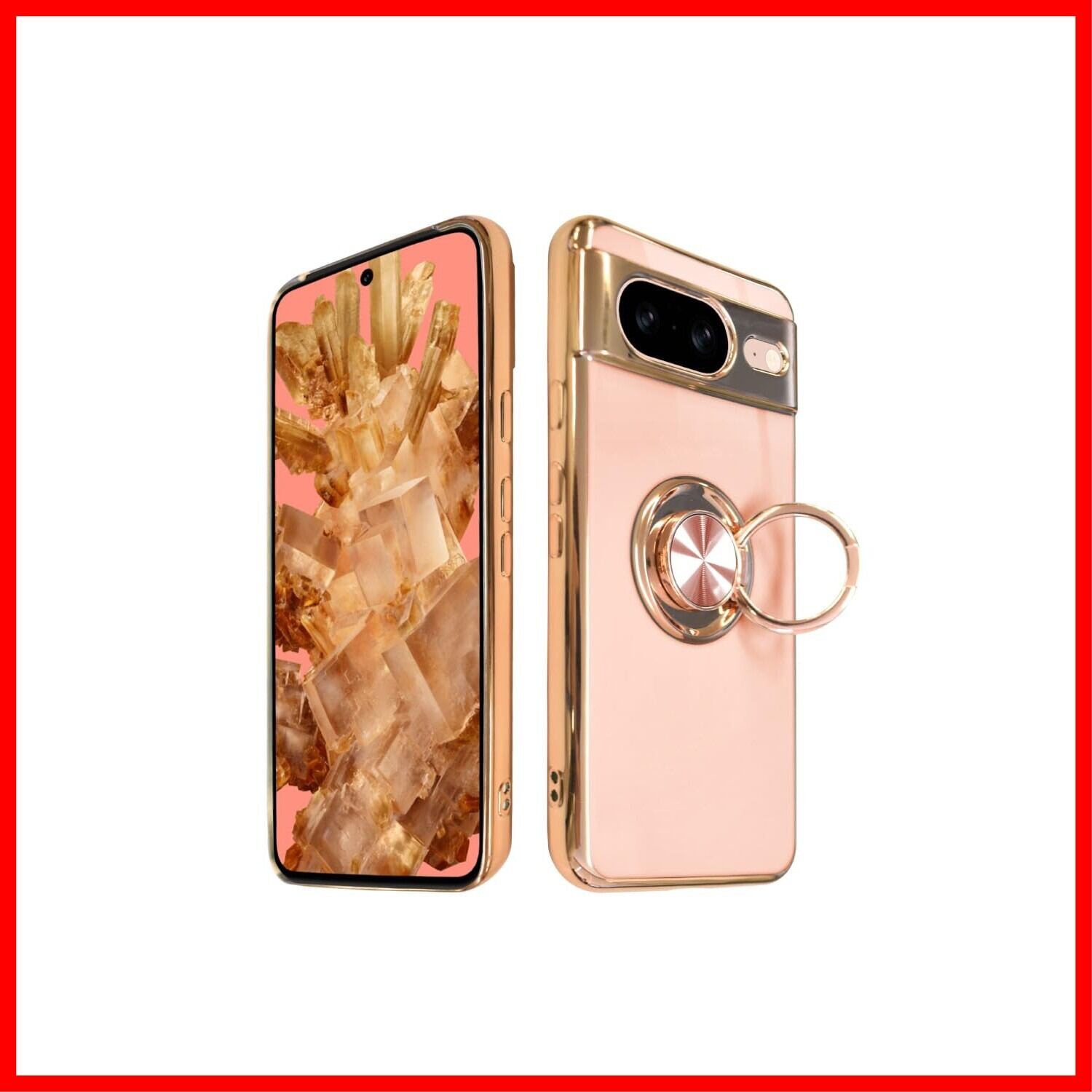 シズカウィル Pixel8 docomo au softbank スマホケース スマホリング グリッティア リング付きケース 1個入り ピーチ