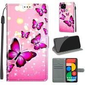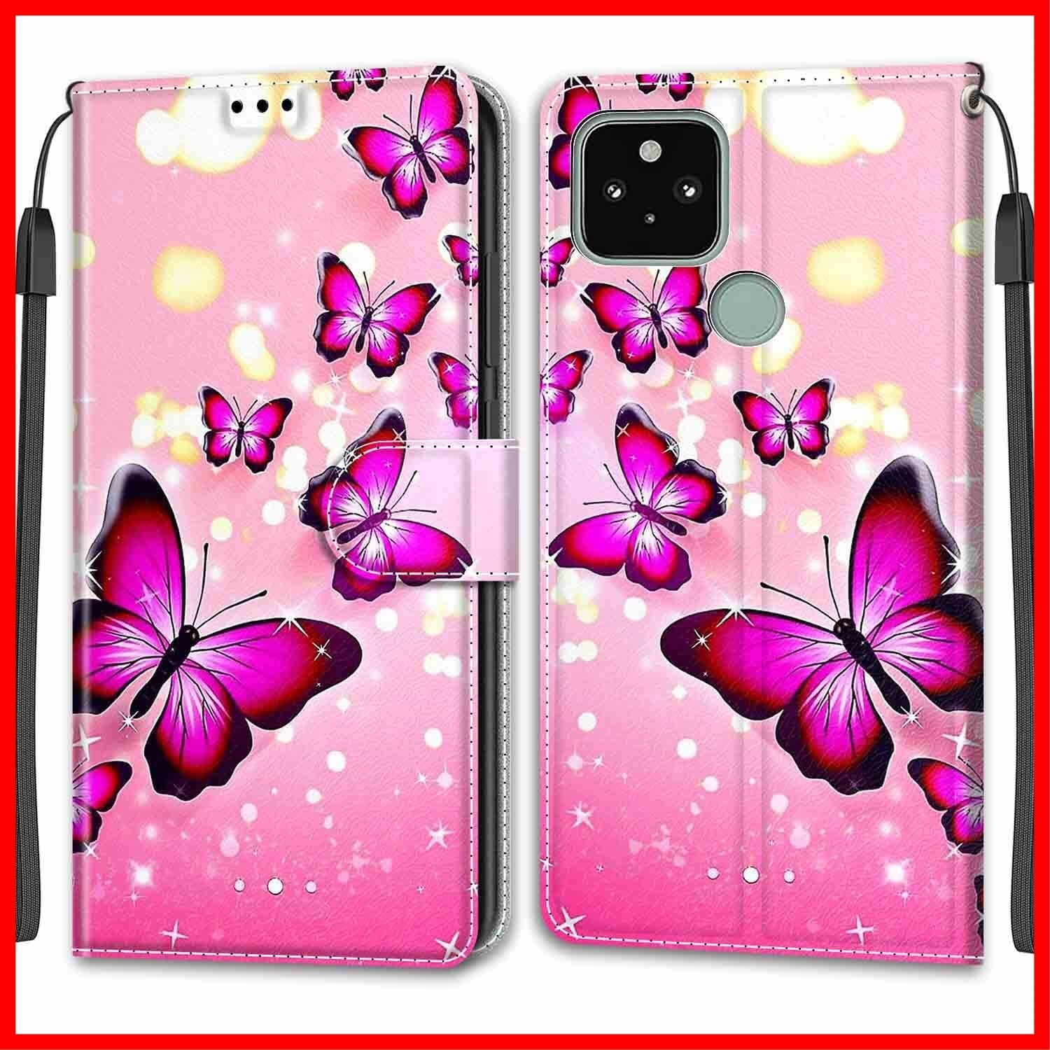 KENHONER Google pixel 5 ケース 手帳型 pixel5 ケース au SIMフリー 全対応 カバー グーグル ピクセル 5 スマホケース ピクセル5 手帳型 適用 case 内蔵マグネット 携帯カバー カード入れ スタンド 機能 ピンクの蝶 | hananoki