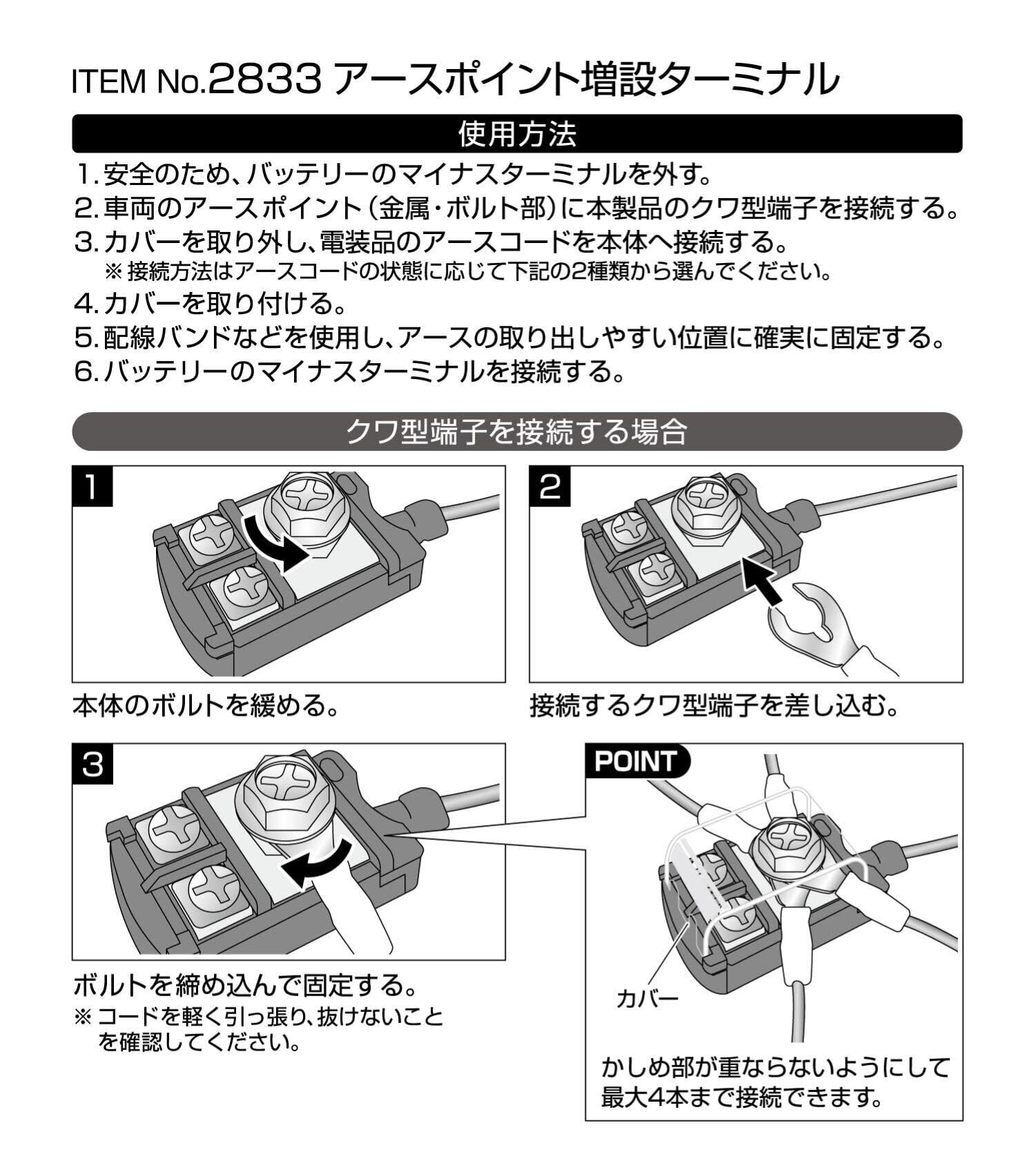 エーモン(amon) アースポイント増設ターミナル DC12V140W以下/DC24V280W以下 2833