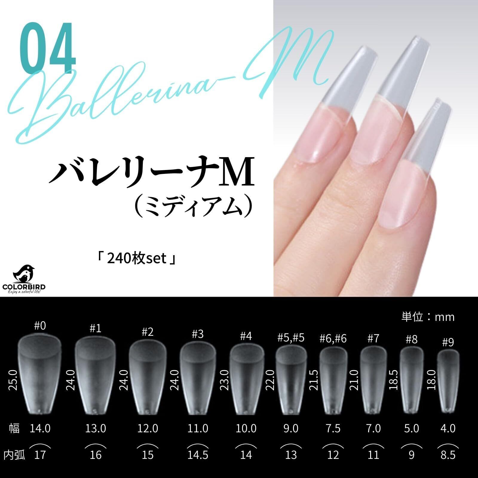 COLORBIRD ネイルチップ 超薄 ロング クリア サンディング 自然なフィット感 つけ爪 (バレリーナM, 240pcs)