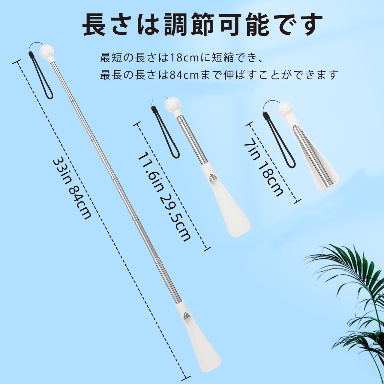 【全年齢層に適した伸縮式靴べら】靴べらの長さは18cmから92cmまで調節可能。座ったまま、または立ったままでも使用でき、腰を曲げることなく靴を履くことができます。お年寄り、妊婦、子供、男性、女性など、家族全員に適したデザインです。