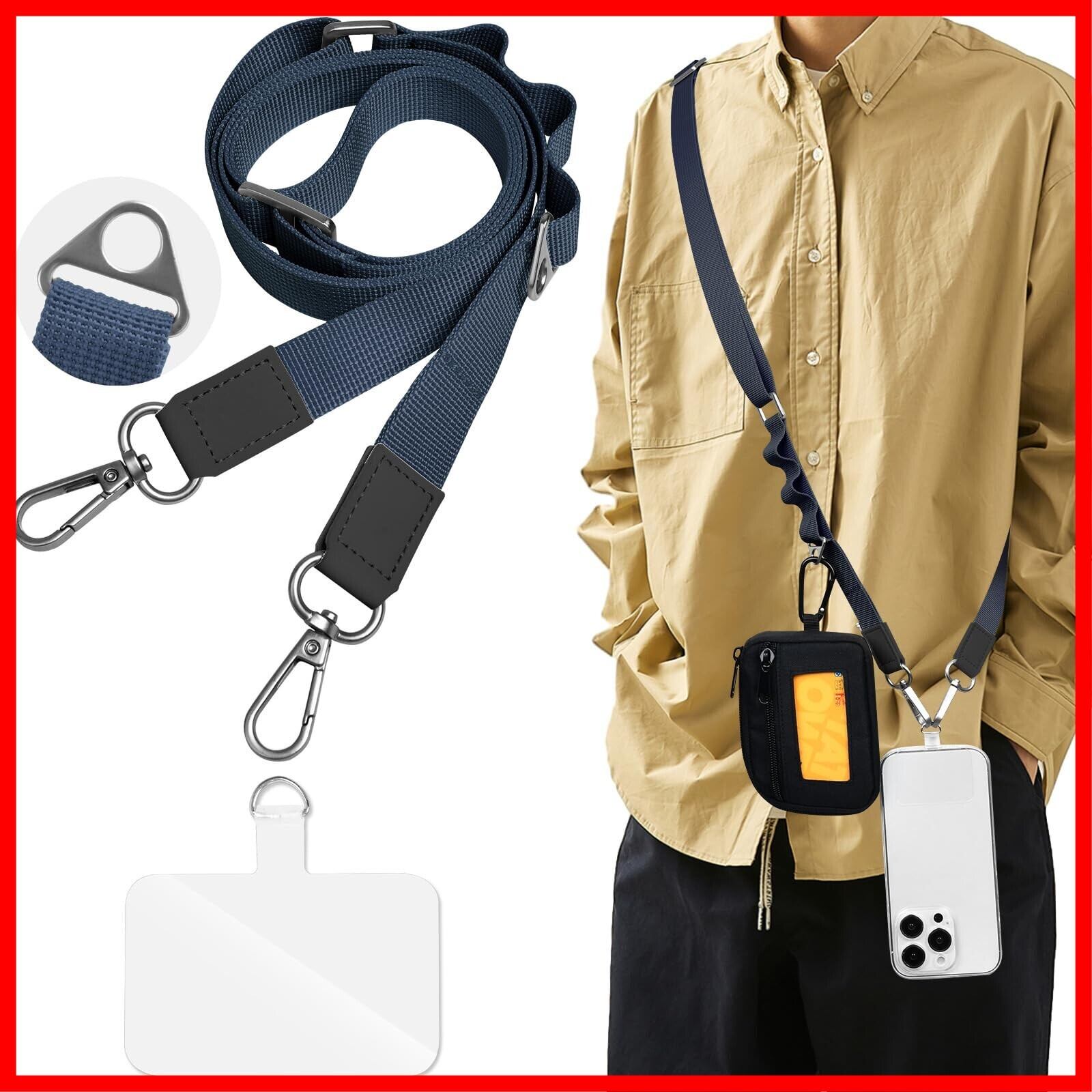 【ショルダーベルトの製品仕様】長さ調整範囲:85-140cm、幅2cm、重量:60g。ショルダーストラップ*1、ストラップカード付*1枚。ユニセックスデザイン、スマホストラップ 斜めがけ/首掛け/肩掛け。