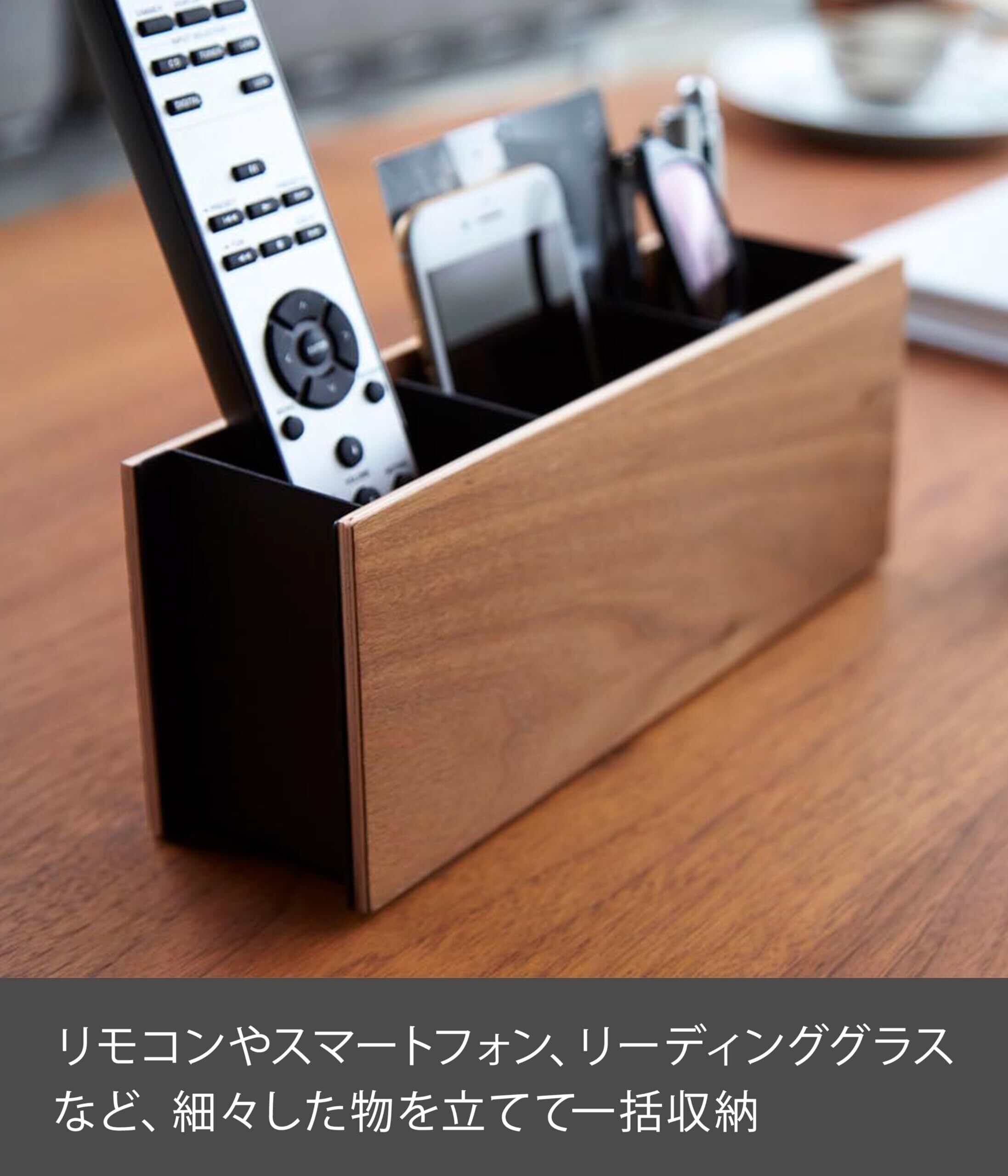 美しい木目でインテリア性のあるスタイリッシュで使い易いリモコンラック。仕切りの隙間にDMなども収納可能。