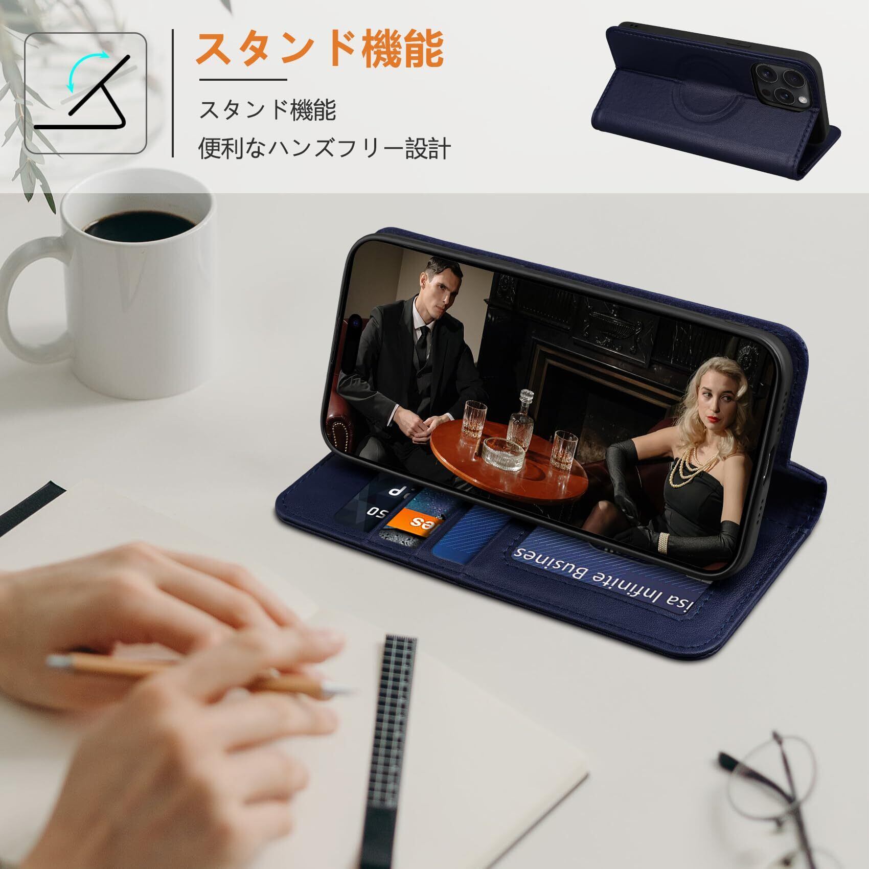 【MagSafe&ワイヤレス充電対応】 取り外し不要,この手帳型ケースはMagsafe充電器やワイヤレス充電器と完全に互換性があります。強力なマグネット搭載しているので、置くだけで簡単に15Wのワイヤレス急速充電を提供します。