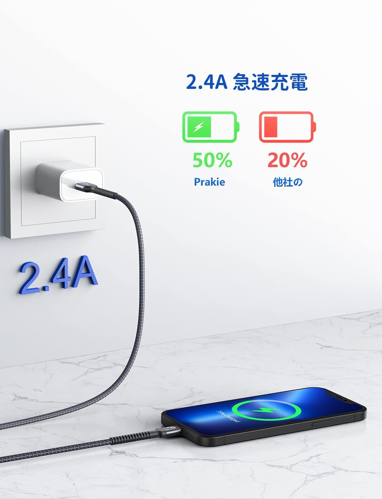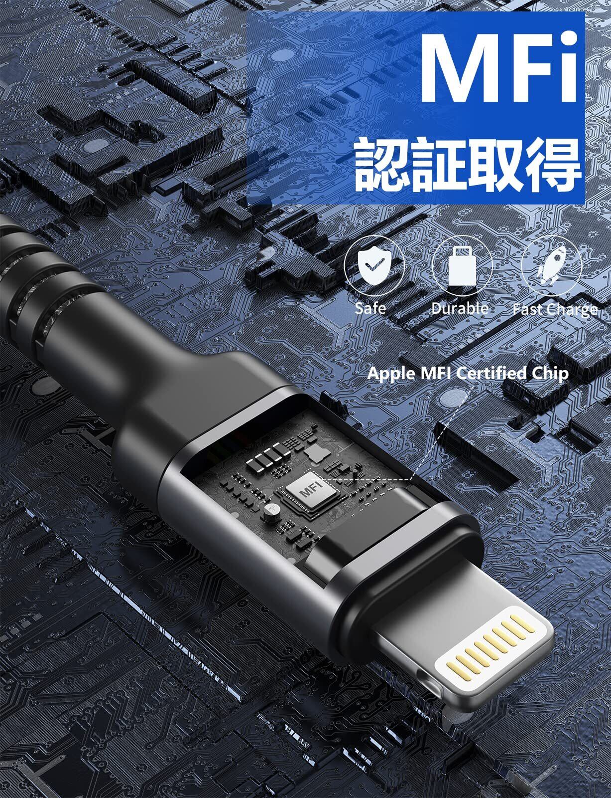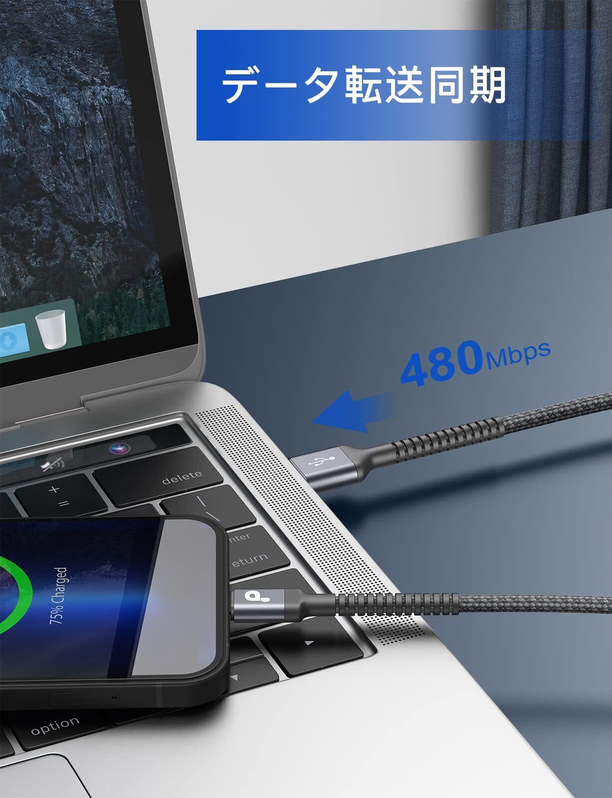 【急速充電&データ同期】iPhone 充電ケーブルは5V/2.4Aの急速充電と最大480Mbpsの高速同期を実現出来ます。充電ケーブルは高品質の銅線を使用し、MFI認証を取得しているため、効率的な充電を実現し、安全な充電実験を提供します。
