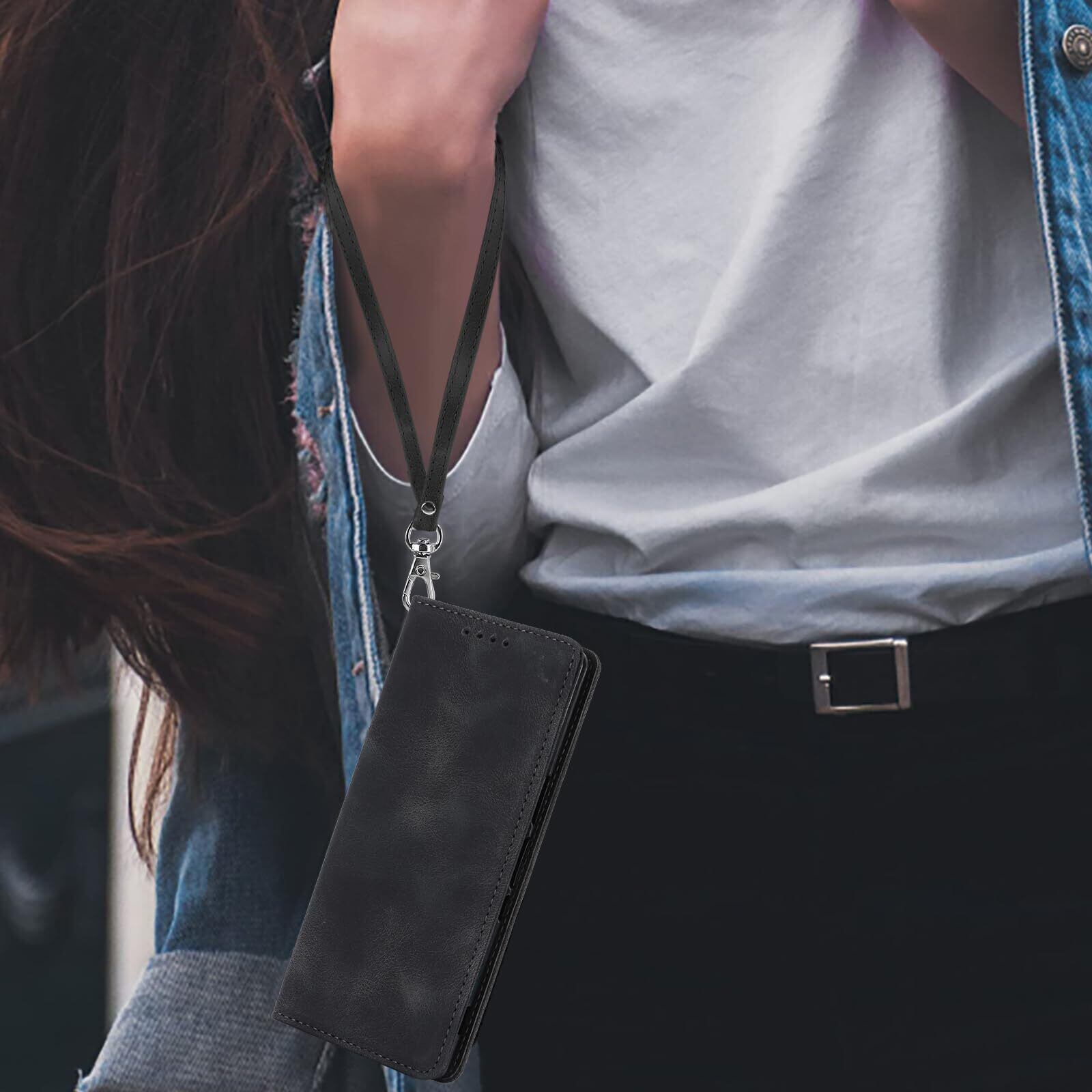 Havaya エクスペリア5 ケース SO-01M ケース SOV41 ケース 手帳型 ストラップ 耐衝撃 901SO softbank SONY ソニー カバー Xperia 2/Xperia XZ5 ドコモ マグネット式 カード収納 レザー スエードの質感-ブラック | hananoki