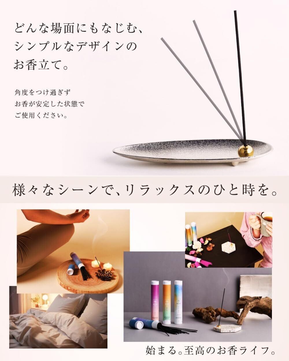 ️【お香たて・香皿付】美しいお香たて・香皿付き。届いたその日から、火を灯すだけで癒しの空間が始まります。※角度をつけすぎるとお香が倒れる場合があります。安定する角度を確認してからご使用ください。