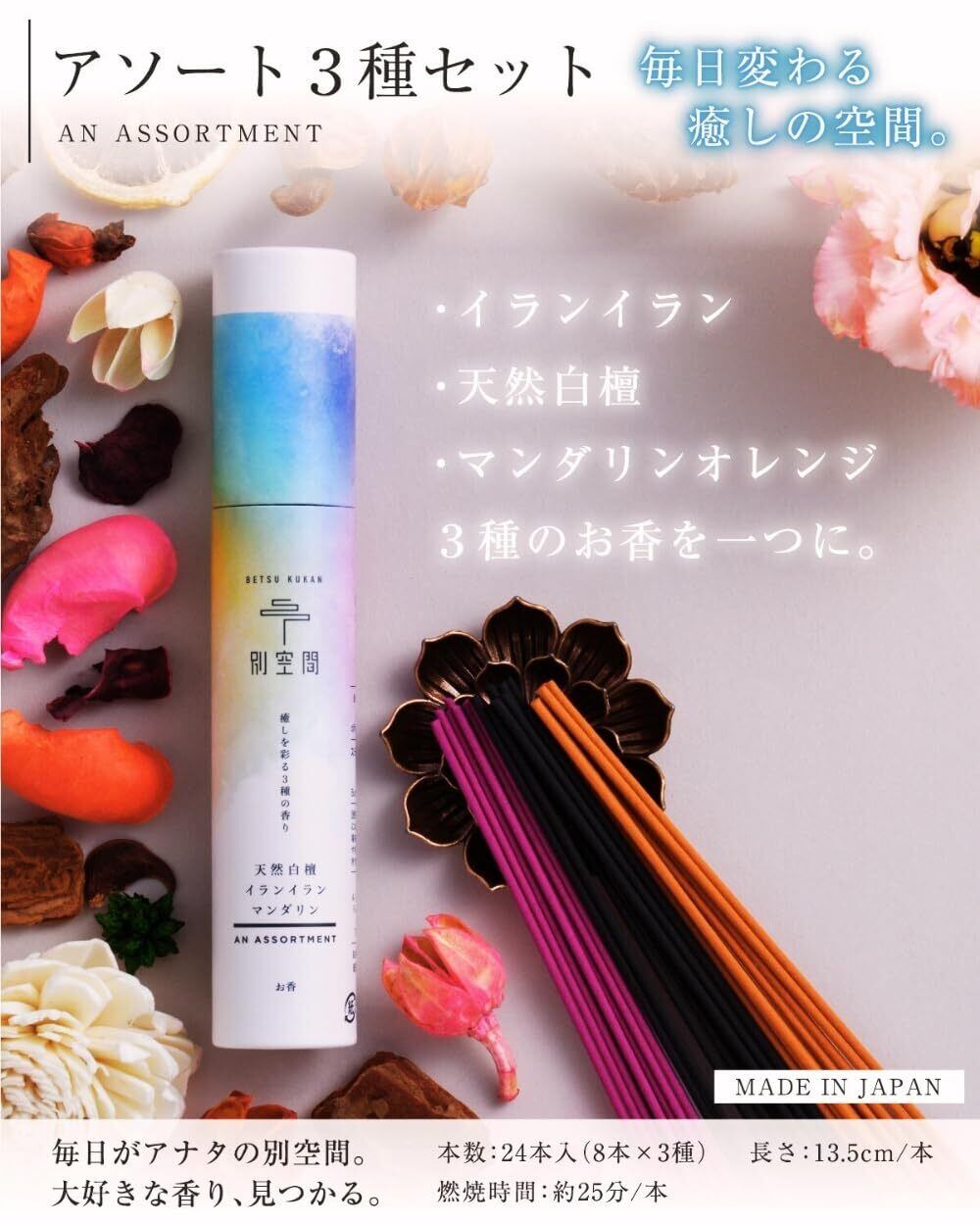 別空間 お香 届いた日から火を灯すだけ お香立て付 3種の香り 癒しの空間 母の日 プレゼント 24本 国産 線香 癒し アロマ リラックス お香り ギフト