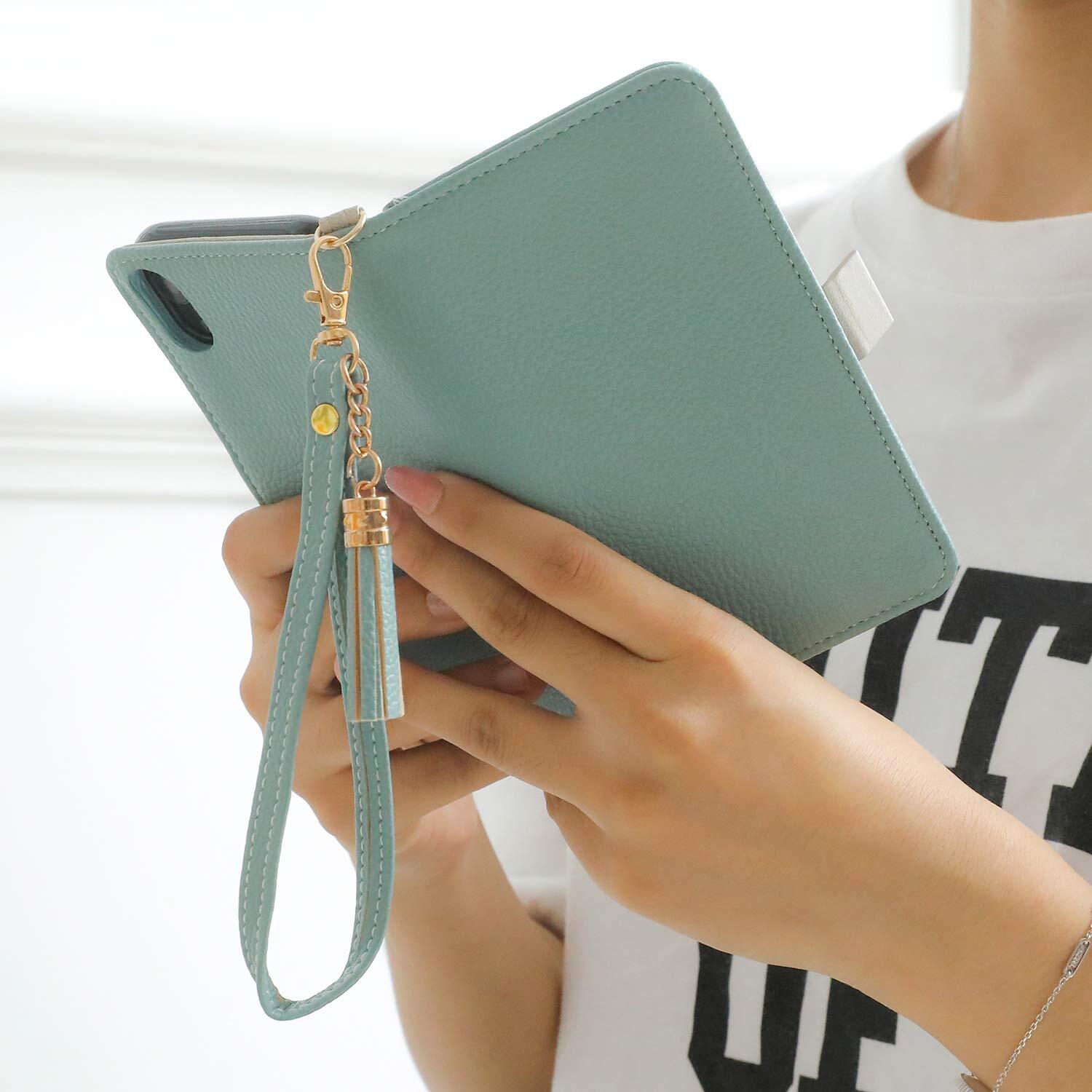 iphone X iphoneXS ケース 手帳型 iphoneXS 手帳型 ケース かわいい スマホケース 手帳型 おしゃれ 可愛い アイフォン X 携帯ケース カード収納 保護ケース 薄型 耐衝撃 防水 軽量 高級PUレザー 横置き機能 スマホ iphoneXS カバー マグネット式 ストラップ付き お洒落 全面保護カバー 財布型 diy鏡付き[ライトグリーン]