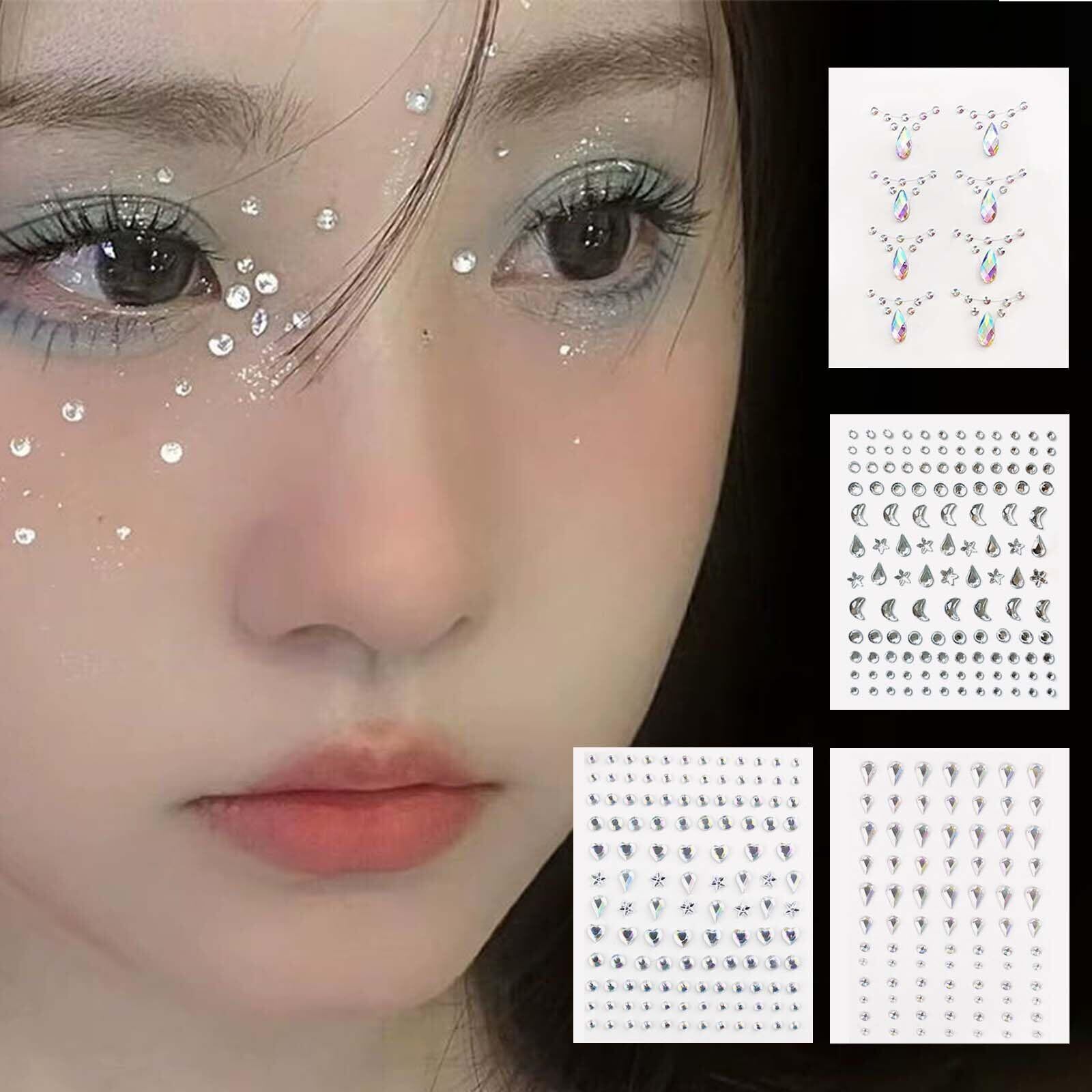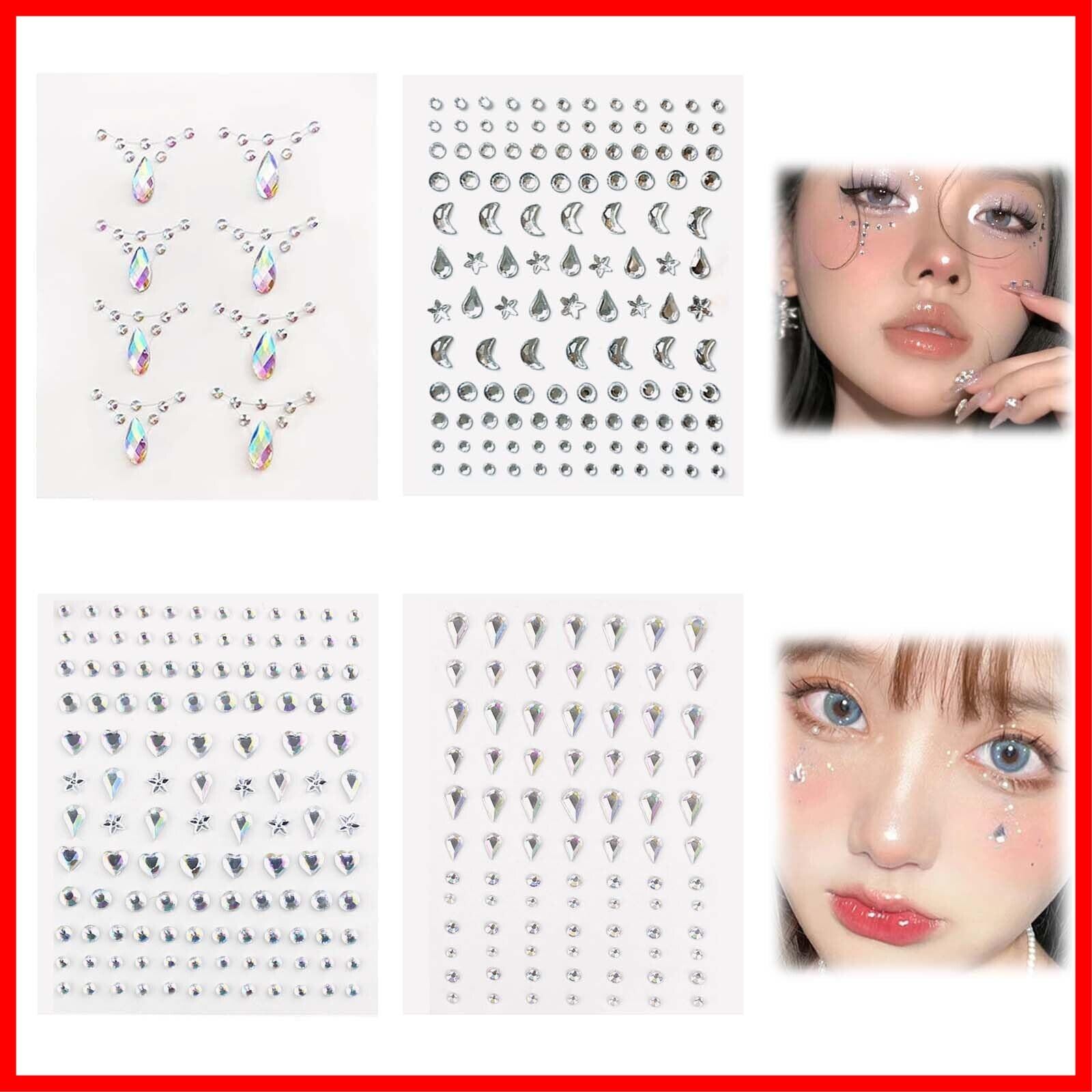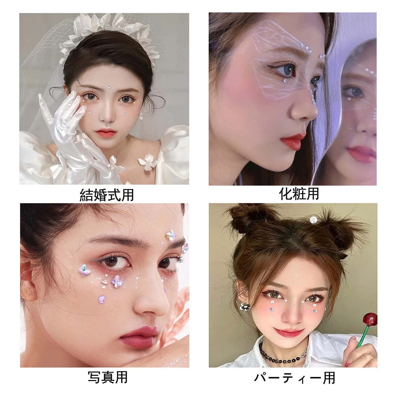 ラインストーンステッカー フェイスステッカー ラインストーンシール (4枚セット) ジュエルステッカー DIY手作り 3D 星 月 パール ダイヤ 水滴 キラキラ 宝石シール 顔面デコ デコパーツ アクセサリーパーツ ネイルデコパーツ