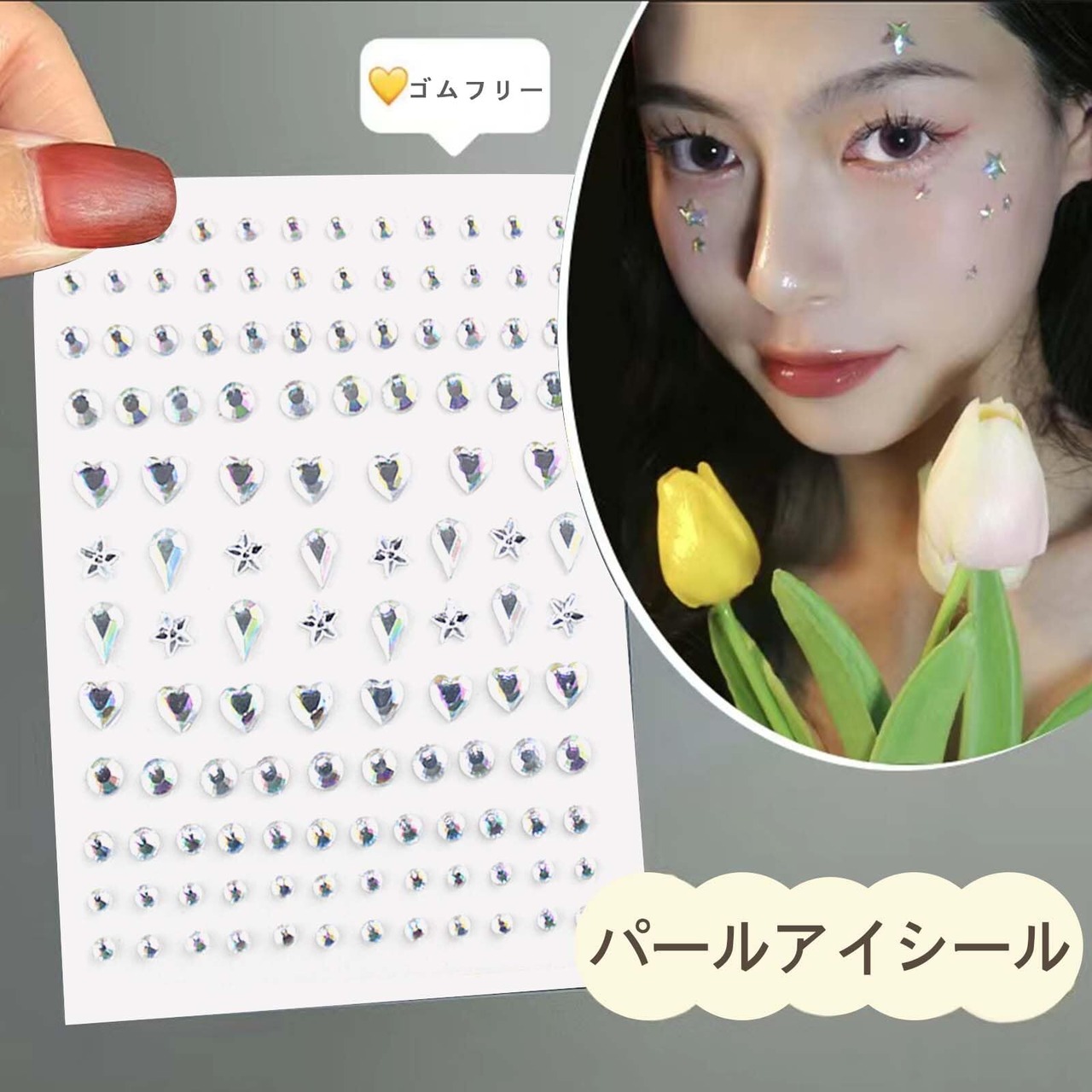 ラインストーンステッカー フェイスステッカー ラインストーンシール (4枚セット) ジュエルステッカー DIY手作り 3D 星 月 パール ダイヤ 水滴 キラキラ 宝石シール 顔面デコ デコパーツ アクセサリーパーツ ネイルデコパーツ | hananoki