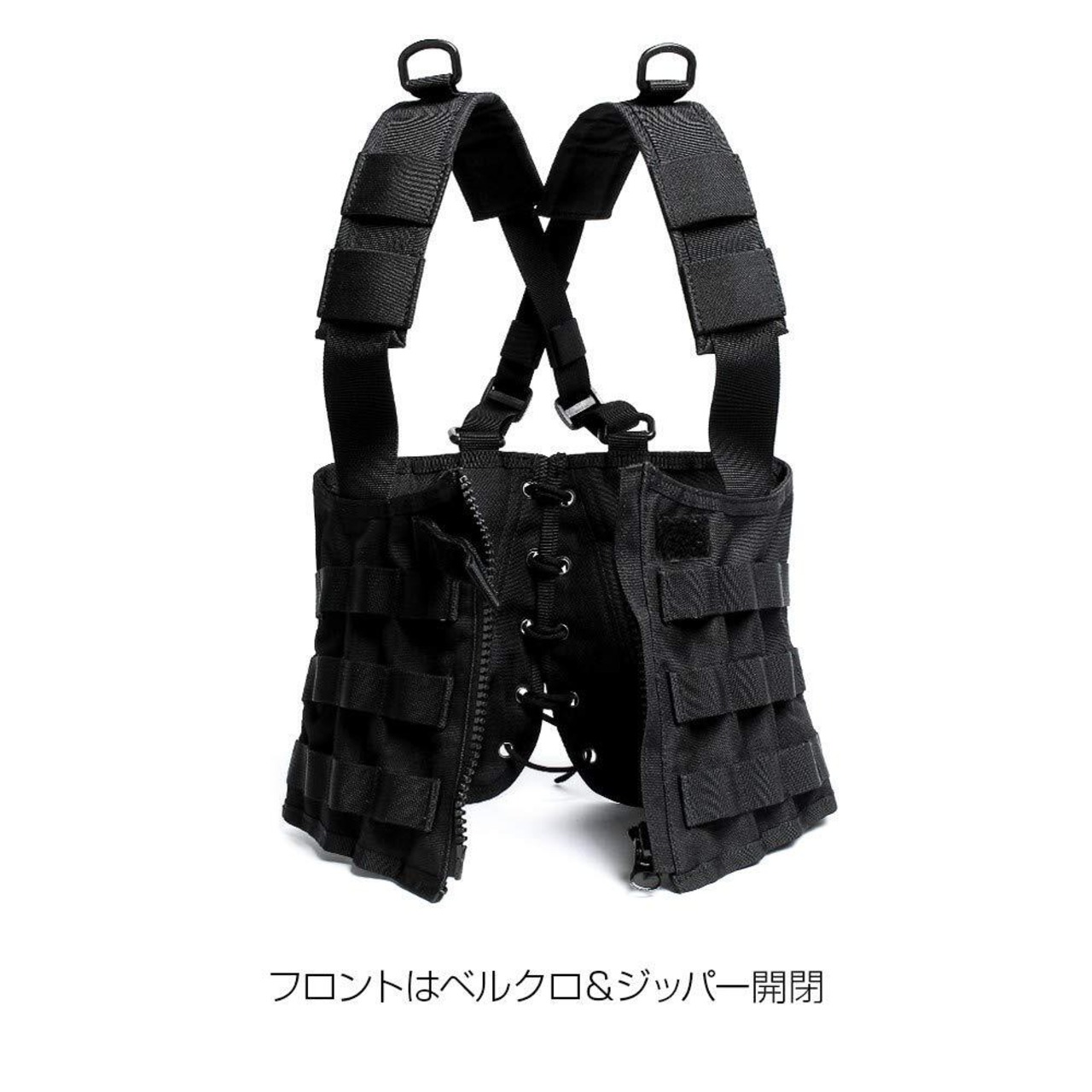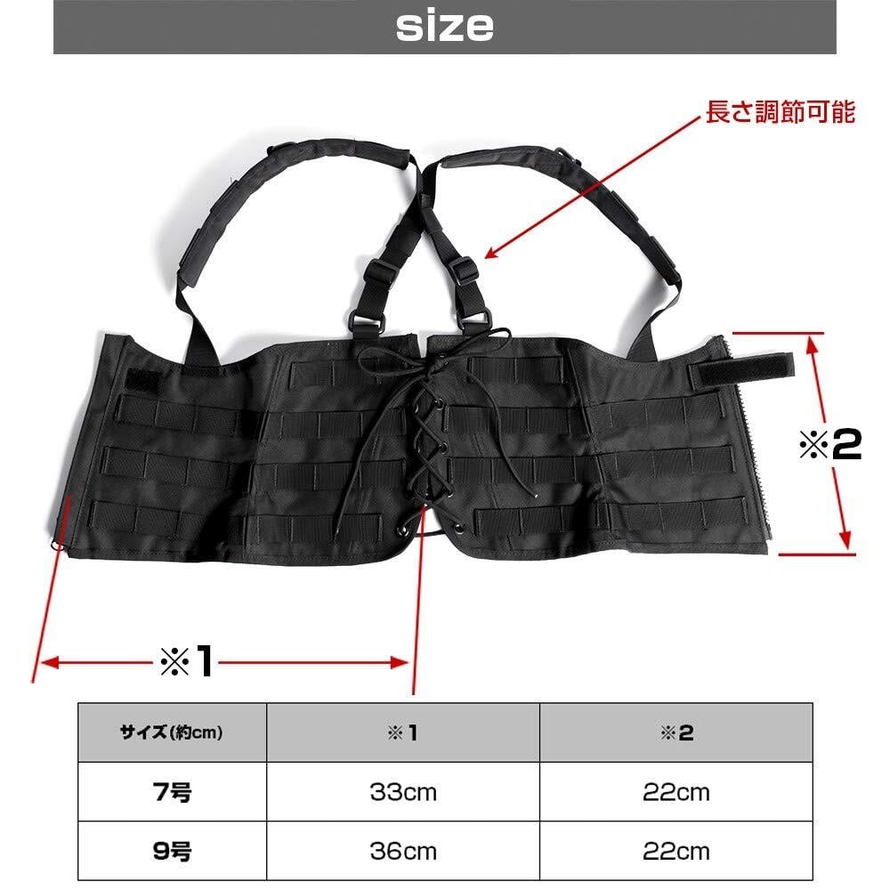 ■素材:ナイロン ■仕様: ・フロント ベルクロ&ジッパー開閉・背中編み上げ(サイズ調節可能)・MOLLEシステム対応・肩ひも調節可能