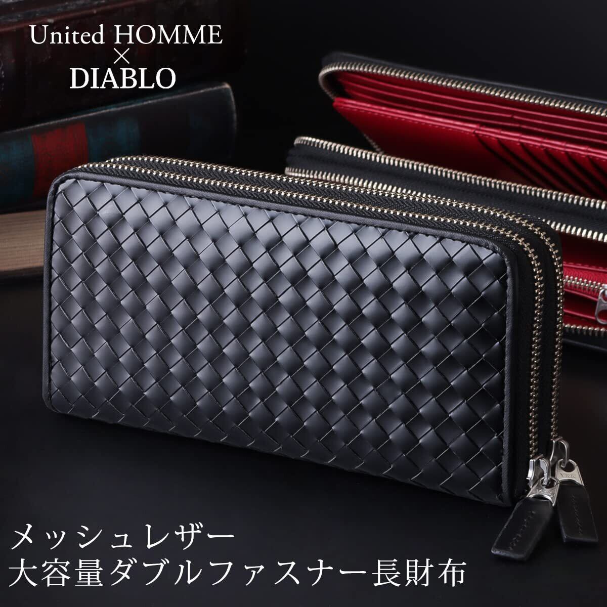 [ディアブロ] 財布 メンズ 長財布 メッシュ 革 大容量 ダブルファスナー ラウンドファスナー United HOMMEコラボアイテム 【UHD-1190】 (ブラック×ブルー)
