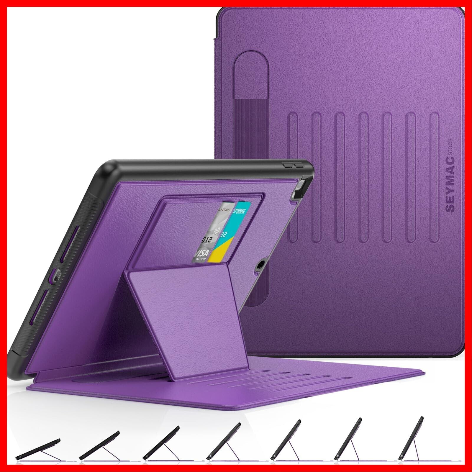 SEYMAC stock ケース iPad 9/8/7世代(2021/2020/2019) 10.2インチ ケース 耐衝撃 多角度横置き調節 オートスリープ ペン収納 カード収納 強磁力全面保護カバー(パープル)(適格請求書発行事業者)