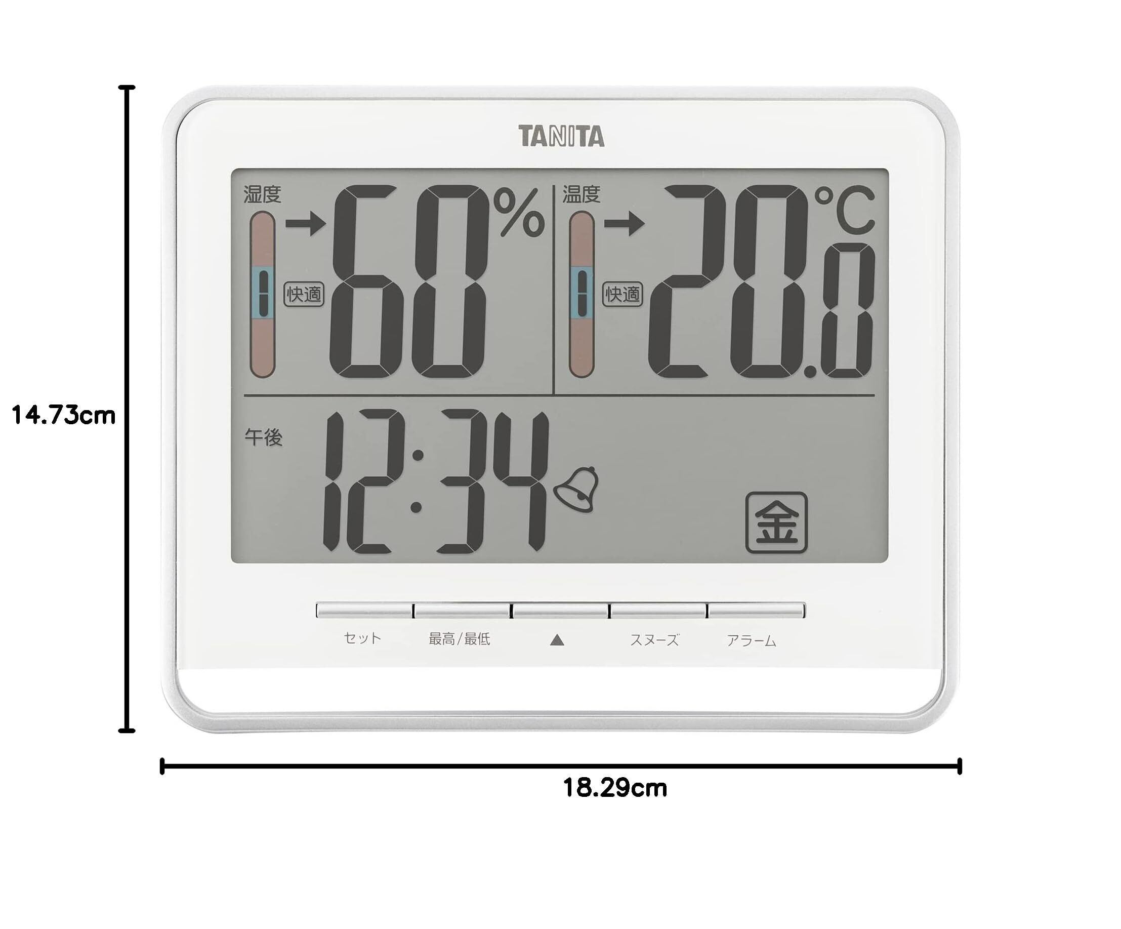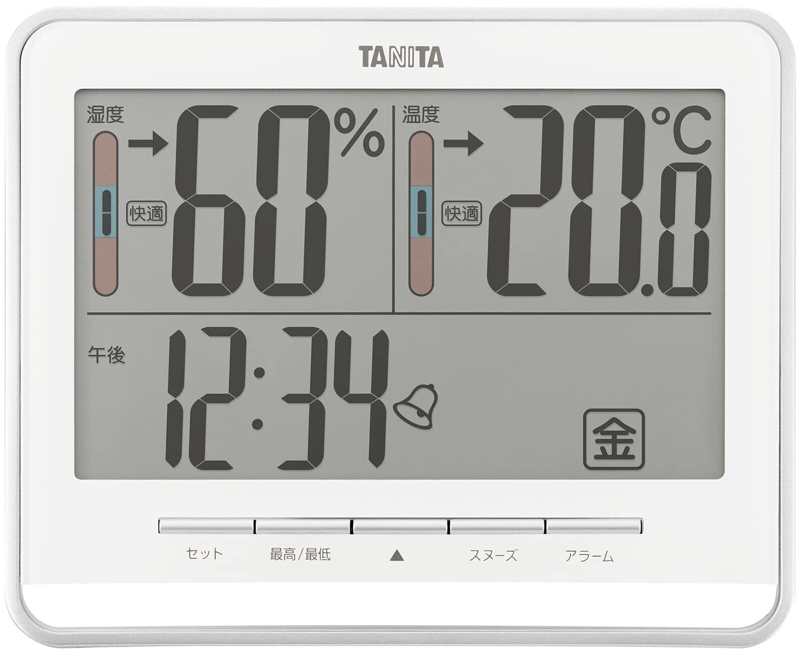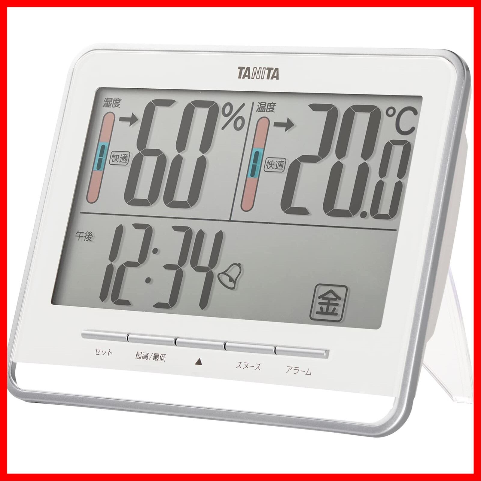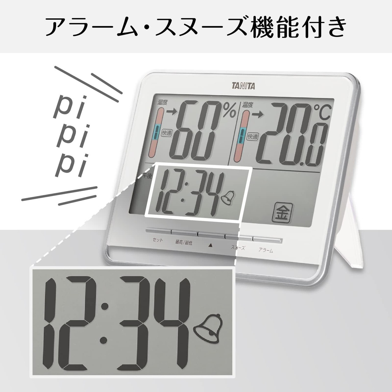 タニタ 時計 デジタル 大画面 ホワイト 温度 湿度 快適レベル 表示 カレンダー アラーム スヌーズ 機能 置き時計 掛け時計 両用 TT-538 WH